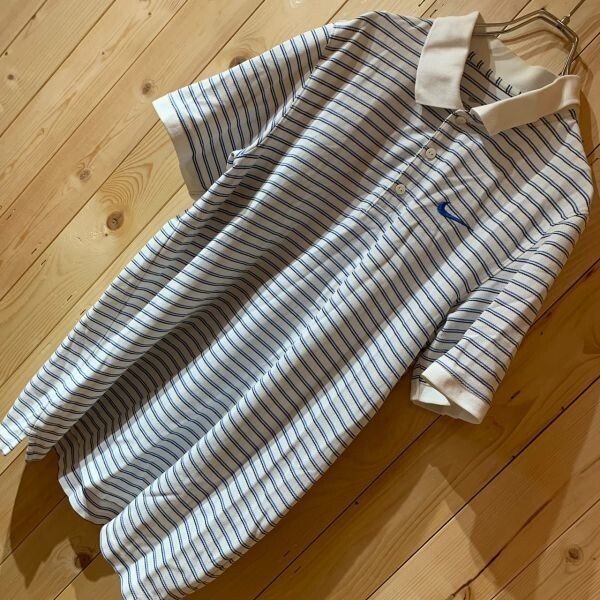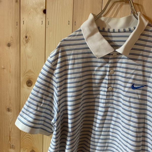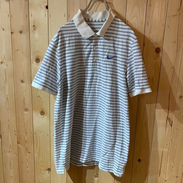 [KWT2922] NIKE ポロシャツ メンズ ホワイトブルーボーダー L ポス