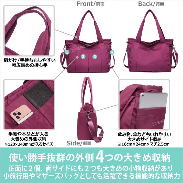 少しつやがある厚手のナイロン生地を使った、横幅50cm超の大容量 トートバッグ です。 収納力があるので買い物バッグ、ピクニックなどレジャー 、小旅行、お花見や運動会、マザーバッグ、また日々の通学用としても活躍します。