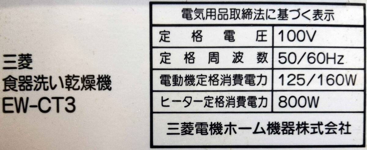 三菱 ◆ 食器洗い乾燥機 EW-CT3 通電確認済み ◇ 食洗機 食器洗い機 給水ホース付き 据え置き 卓上 除菌 家事 軽減 ◆ MITSUBISHI
