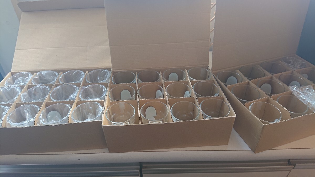 女の子のイラスト付きのショットグラスセットです。34個あります。あとハート型の飾り付きです。グラスはのせるだけになります。グラスは全て未使用です。飾りは店内に置いていたものになります。