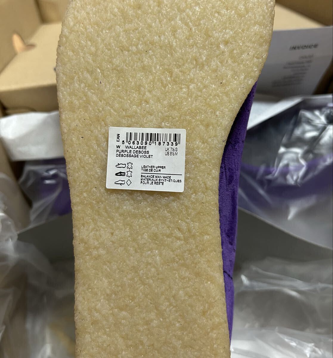 パープルのスエードと同系色のデボス加工が施され、