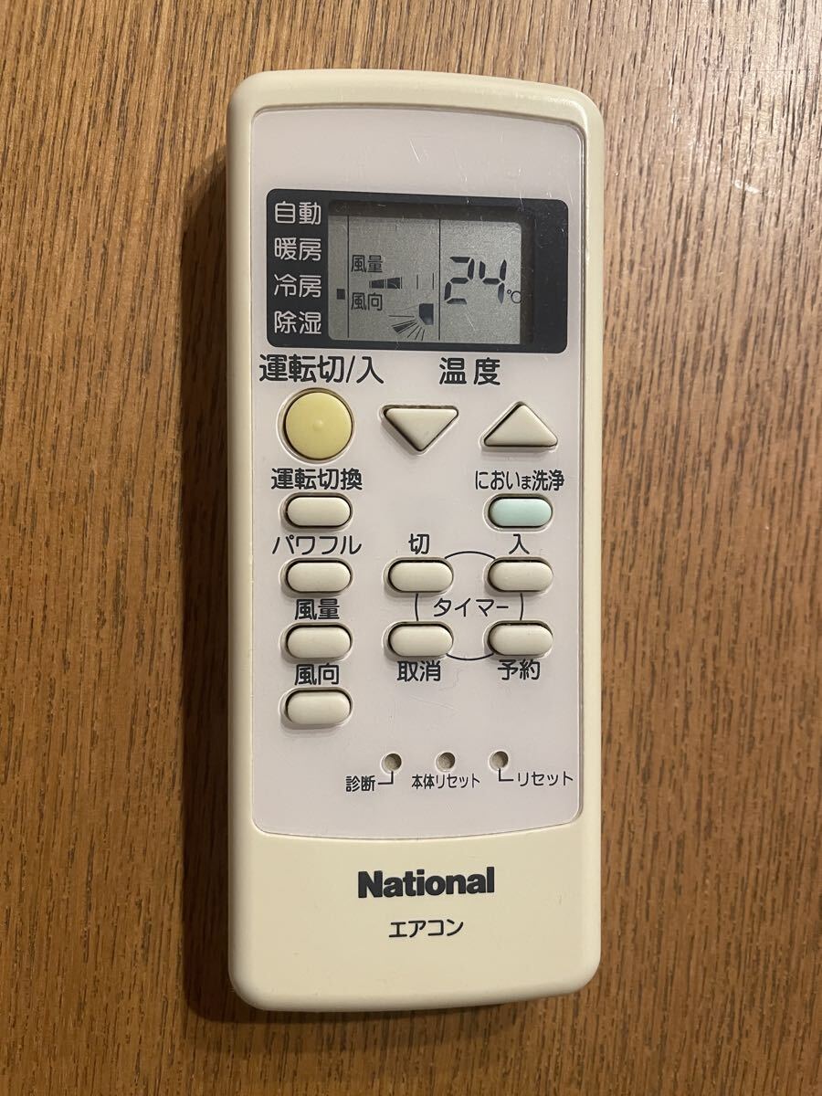 エアコン買い替えにより不要となったNational エアコンの純正品リモコンで問題なく使えます。出品に際して除菌シートで拭きました。キズ等使用感はございます。予めご了承ください。電池はそのまま入れておりますがいつまで持つかは分かりません。以上をご理解の上、ご入札ください。