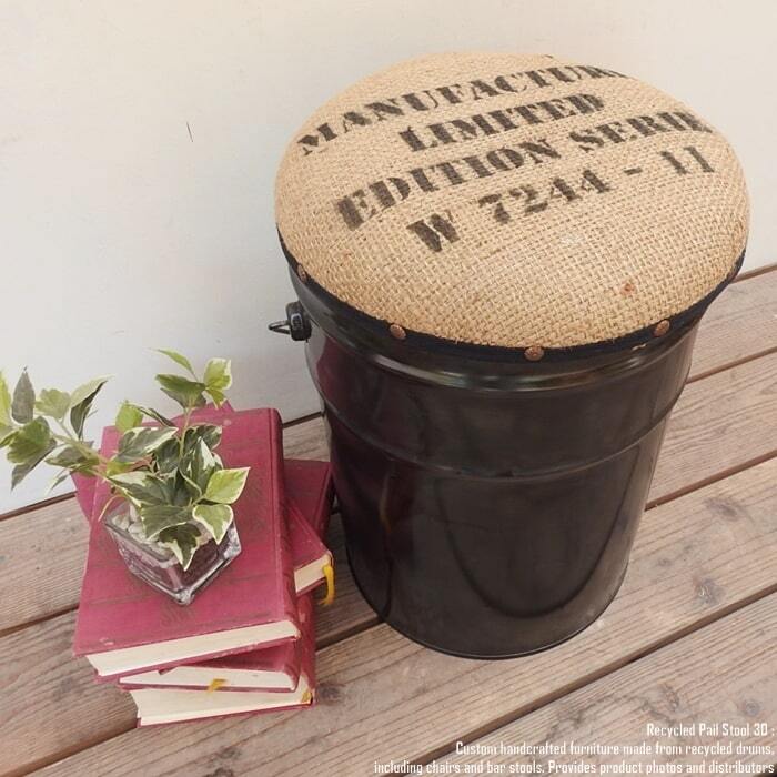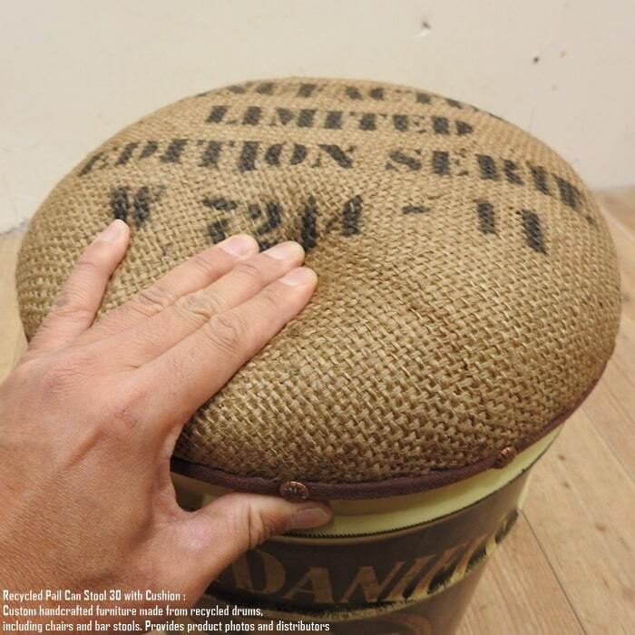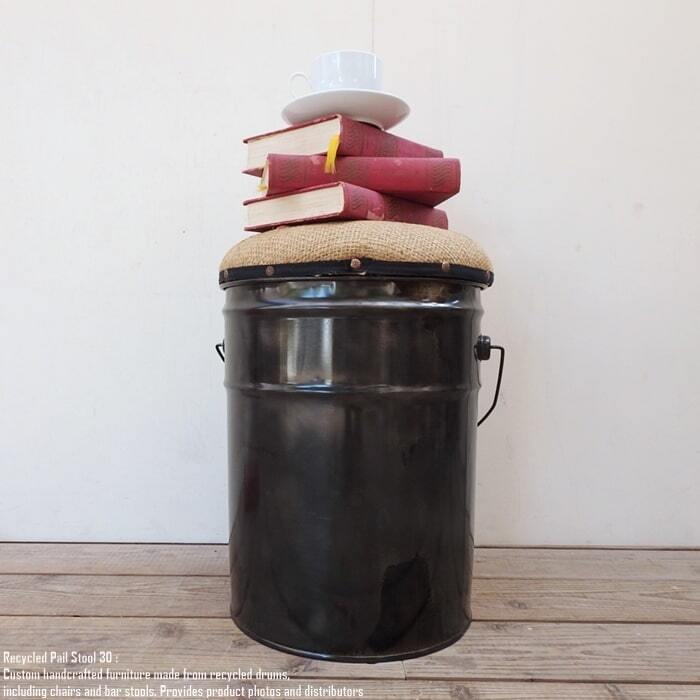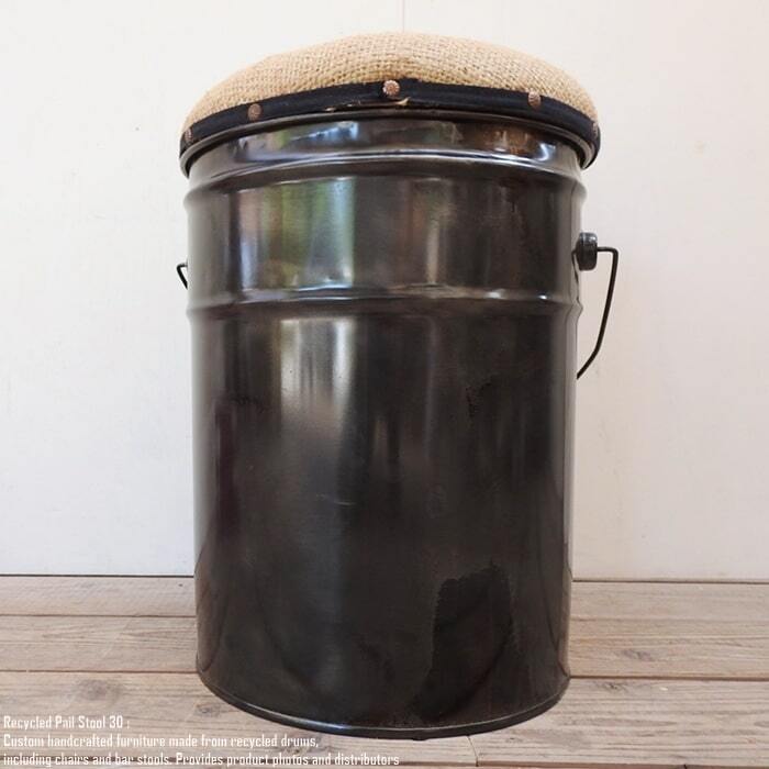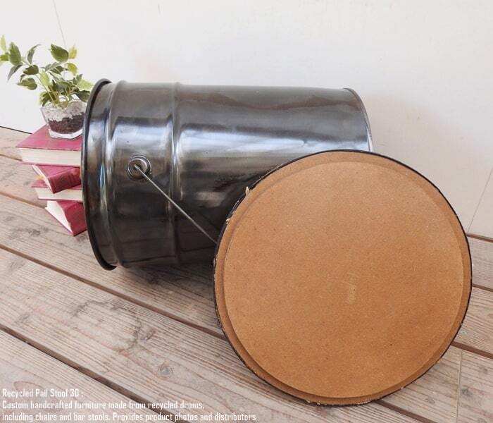 ペンキやオイルが入っていた使用済みのペール缶を可愛いスツールへリメイクいたしました。