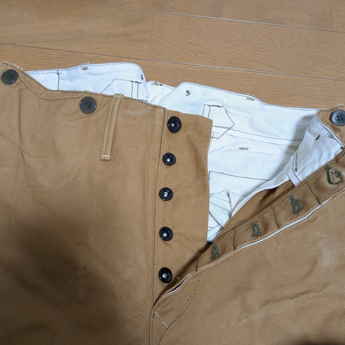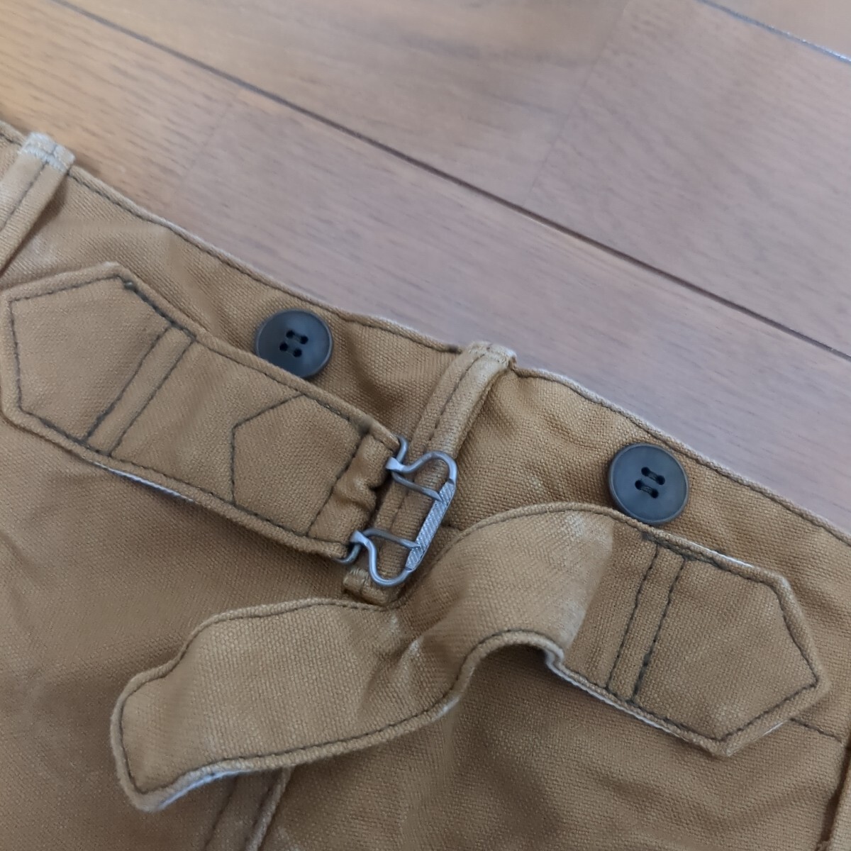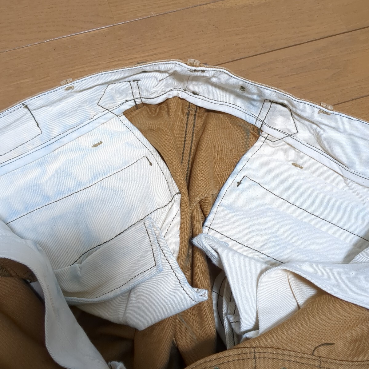 写真の物が全てです。購入後、そのままタンスにしまったままでした。バックルバックも未だ針を生地に貫通させていません。水通しもしていない為、ラベルの縮みもありません。但し、ポケット裏地はジーンズ等と一緒にタンスに入れていたからか、色移りがあります。恐らく洗濯で落ちると思います。ダックの生地はゴワゴワしておりますか、折りシワによる色スレがあります。あくまでも一度は人の手に渡った物ですので、神経質な方はご購入をお控え下さい。ノークレーム、ノーリターン。