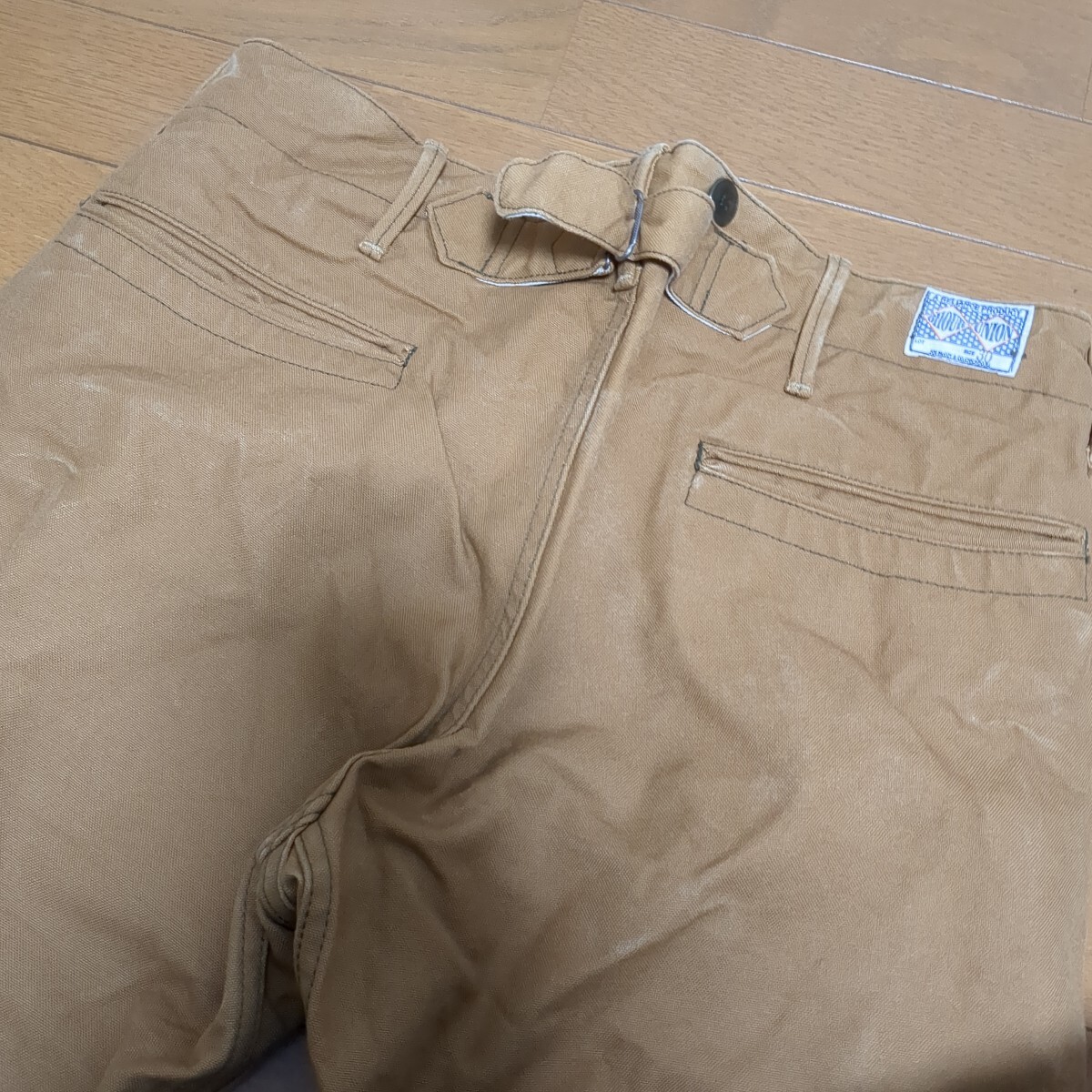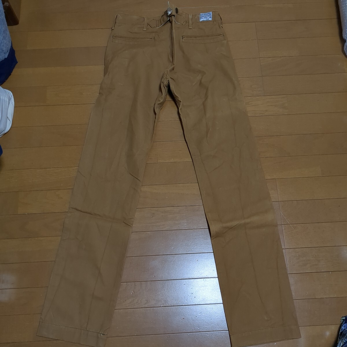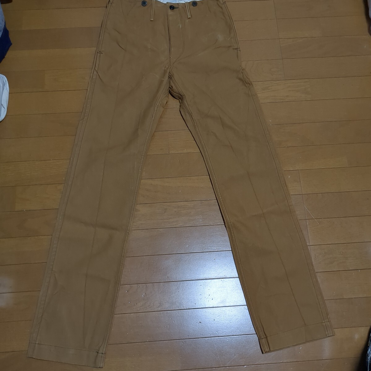 写真の物が全てです。購入後、そのままタンスにしまったままでした。バックルバックも未だ針を生地に貫通させていません。水通しもしていない為、ラベルの縮みもありません。但し、ポケット裏地はジーンズ等と一緒にタンスに入れていたからか、色移りがあります。恐らく洗濯で落ちると思います。ダックの生地はゴワゴワしておりますか、折りシワによる色スレがあります。あくまでも一度は人の手に渡った物ですので、神経質な方はご購入をお控え下さい。ノークレーム、ノーリターン。