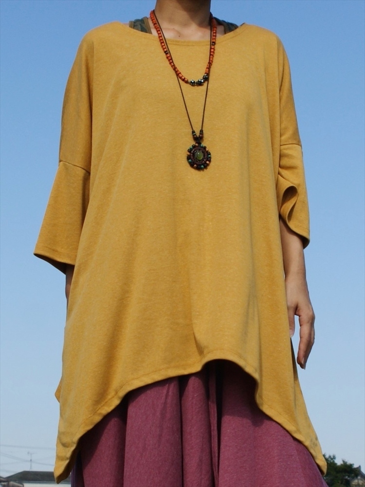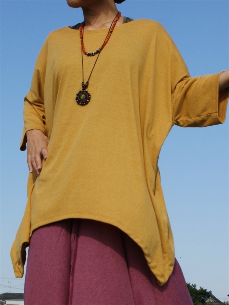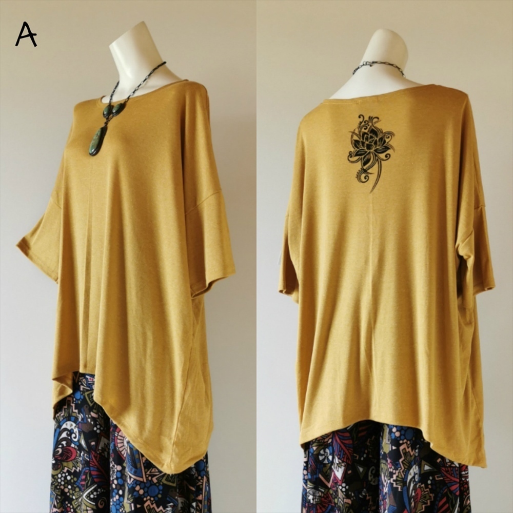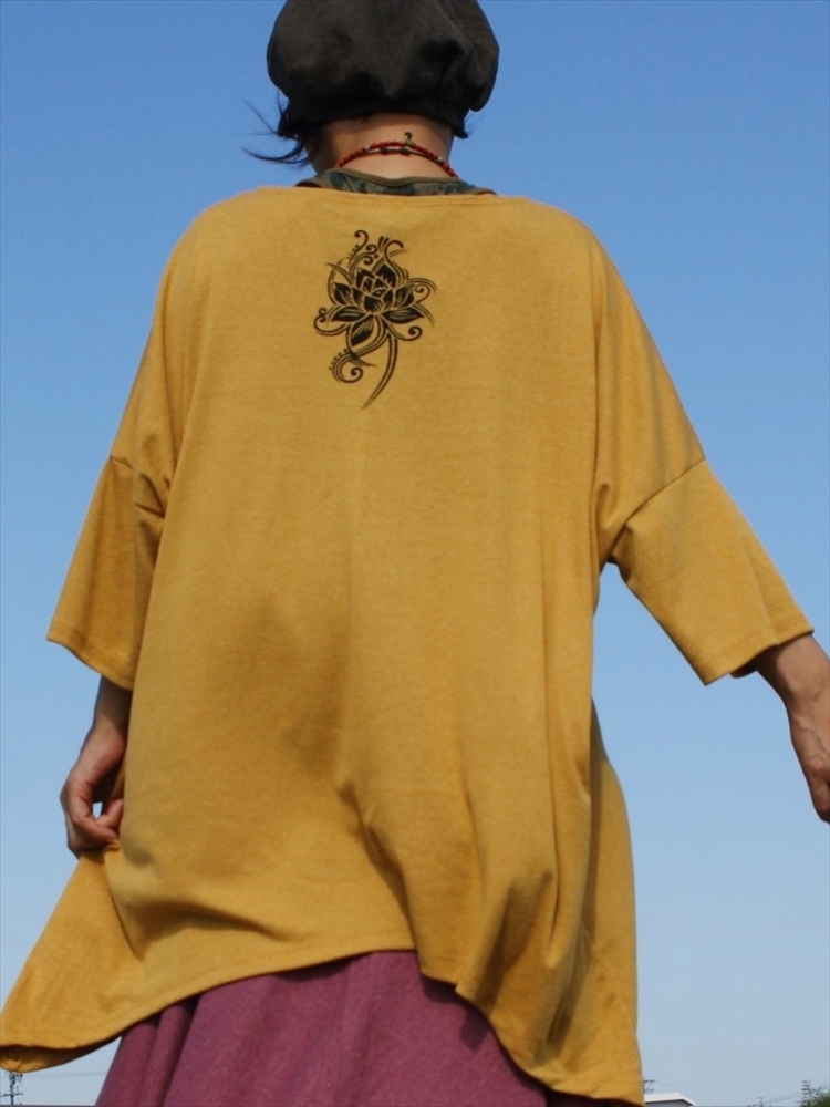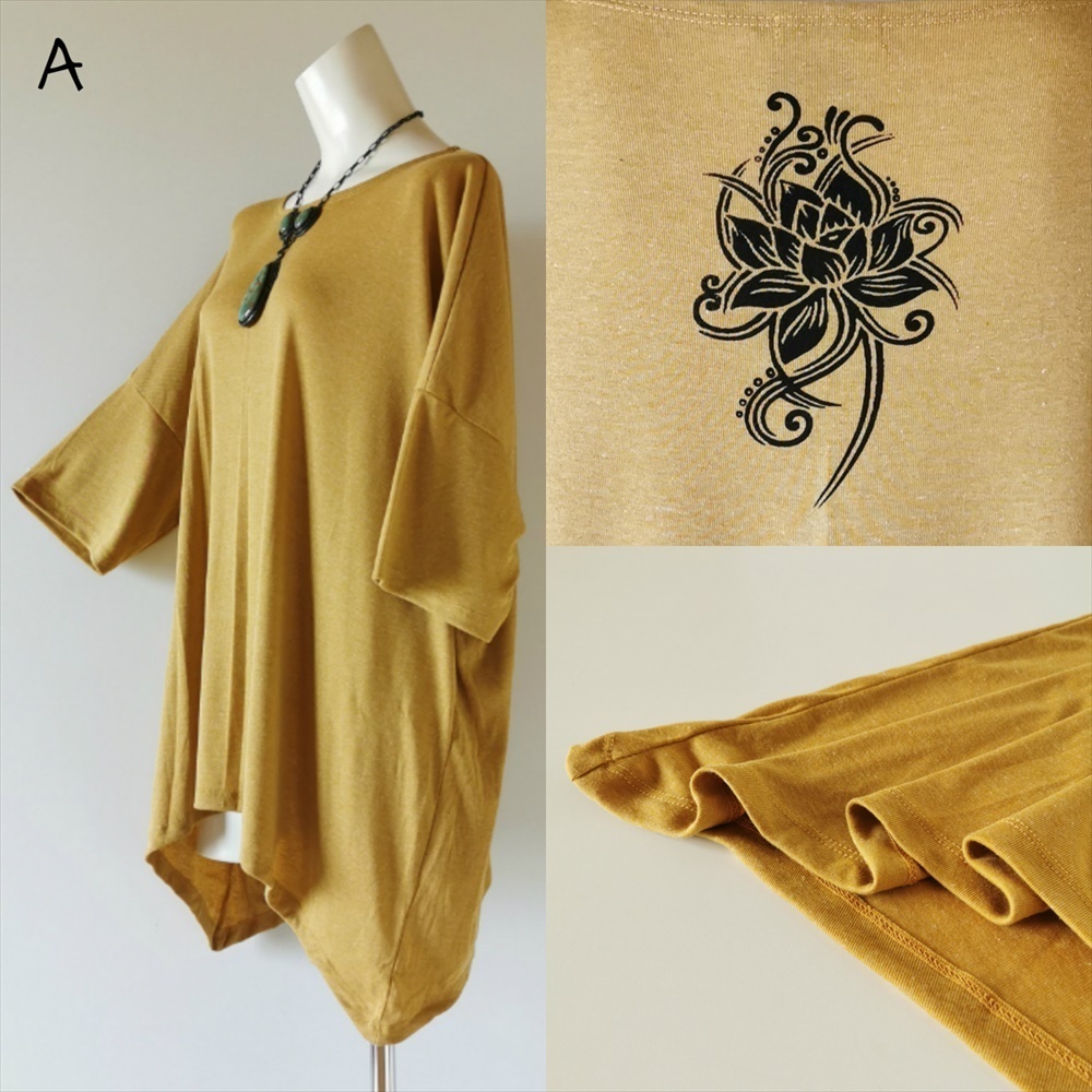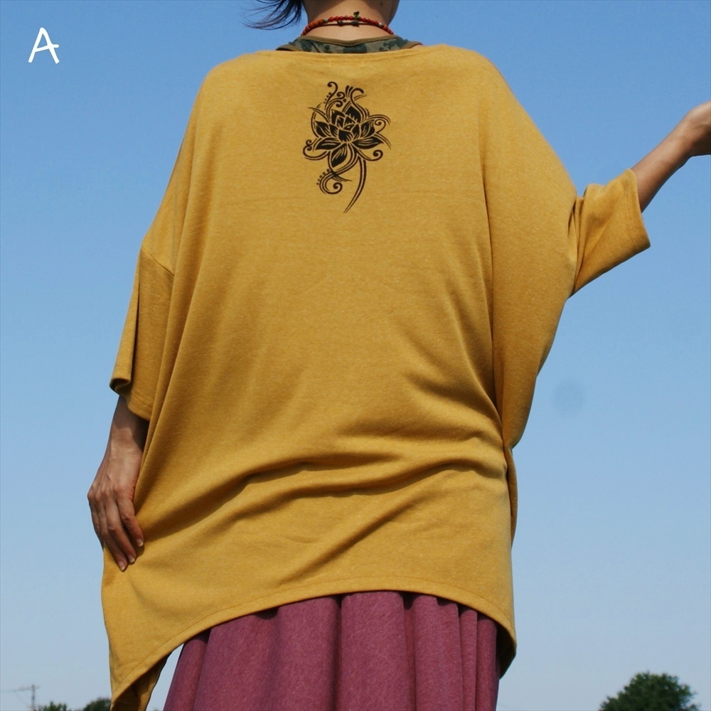 ★エスニック ドルマン トップス ロータスプリント やわらか生地★送料込新品A★アジアン アースカラー シンプルト