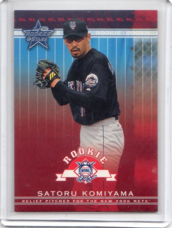 | ★商品説明★ | 2002DONRUSS LEAF ROOKIES & STARS #344 ROOKIE 小宮山 悟 MLBルーキー・カード ----------------------------------------------------------- ■小宮山 悟 MLB成績 2002年 1年 メッツ 25試合 0勝3敗 43 1/3回 33奪三振 防御率5.61 小宮山ファンの方、是非どうぞ! |