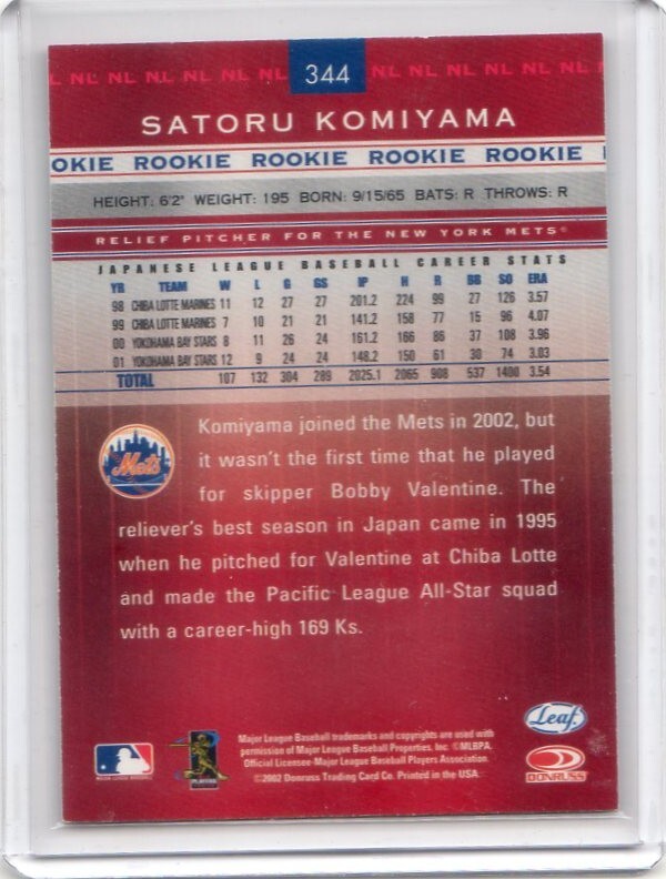 | ★☆小宮山 悟 カード Vol.32 2002DONRUSS LEAF ROOKIES & STARS #344 ルーキー☆★ | |