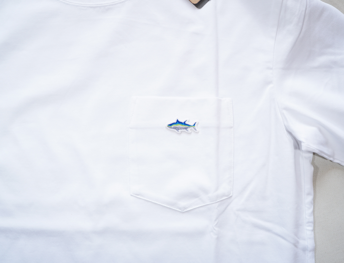コットン・ポリエステルを使用した、ナチュラルで滑らかな肌触りのTシャツです。着まわしを考えながら永く着続けられるように、デザインはシンプルかつ印象的に、胸ポケットに釣りをモチーフにしたワンポイントのパッチにとどめています。袖はリブ仕様となっており、ずれにくく手首の位置にしっかりと収まります。