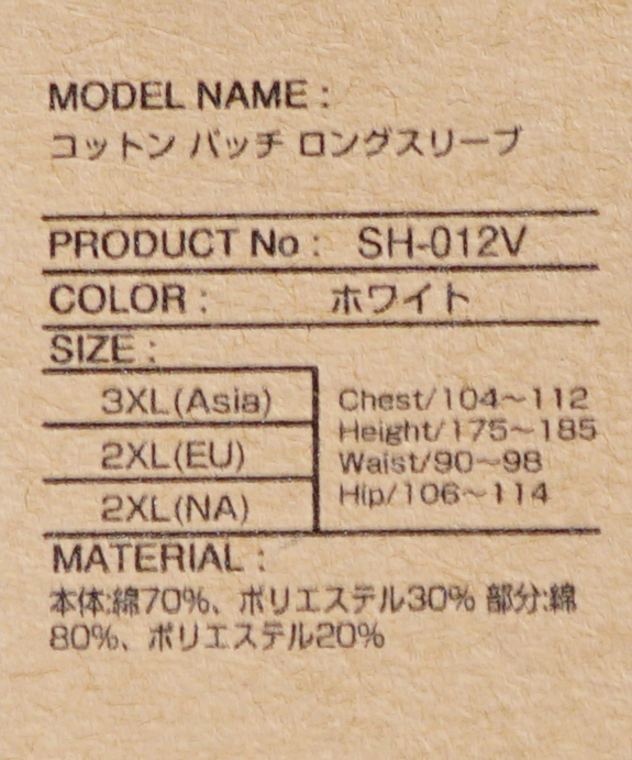 シマノ SH-012V コットンパッチロングスリーブ ホワイト 3XLサイズ