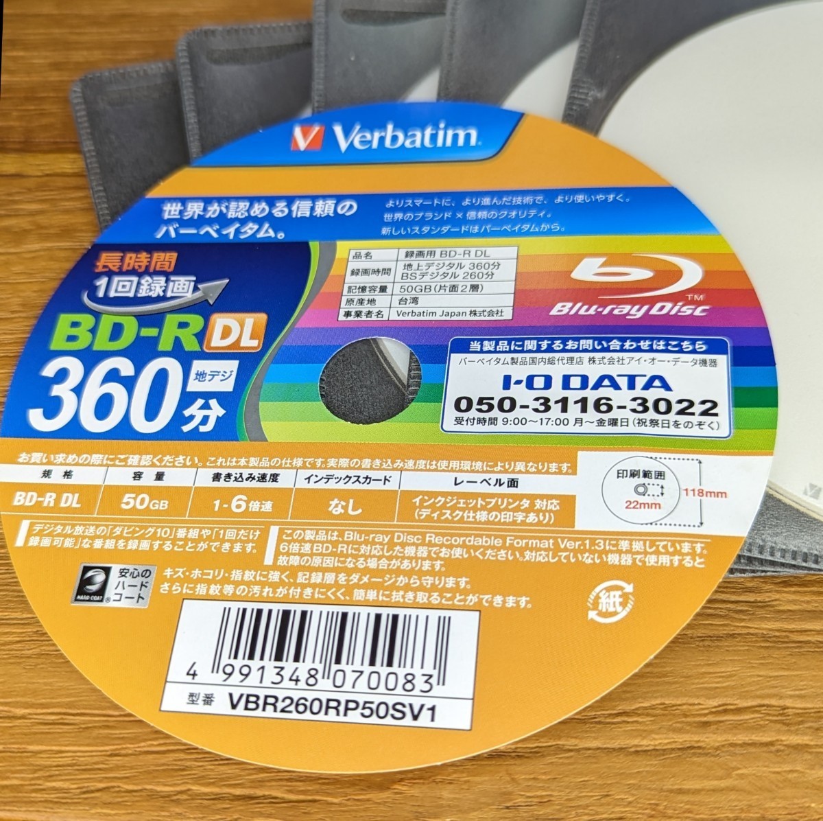 VR5【新品】Verbatim Blu-ray1回録画【6倍速】50GB×5枚