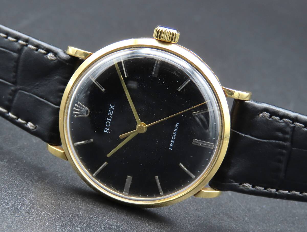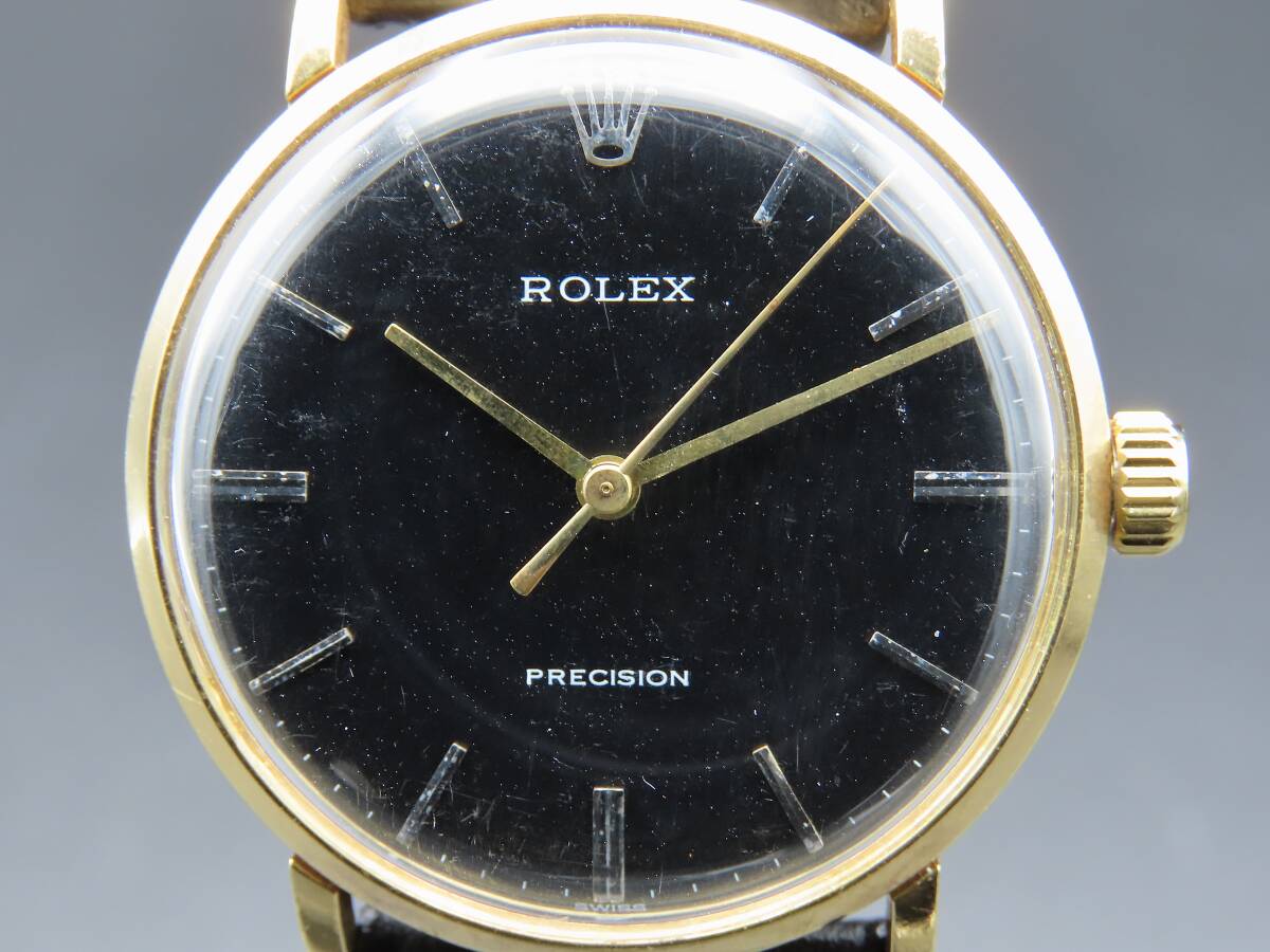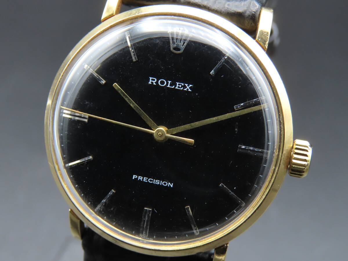 稼動品 ROLEX ロレックス プレシジョン 9659J 30番 18金 YG 金無垢 総重量33.8g 手巻き Cal.1225 ブラックダイヤル メンズ腕時計 PPKLG3401
