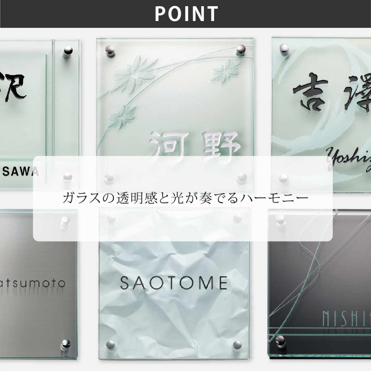 商品詳細 | クリアーガラスを使ったシンプルな表札です。 |