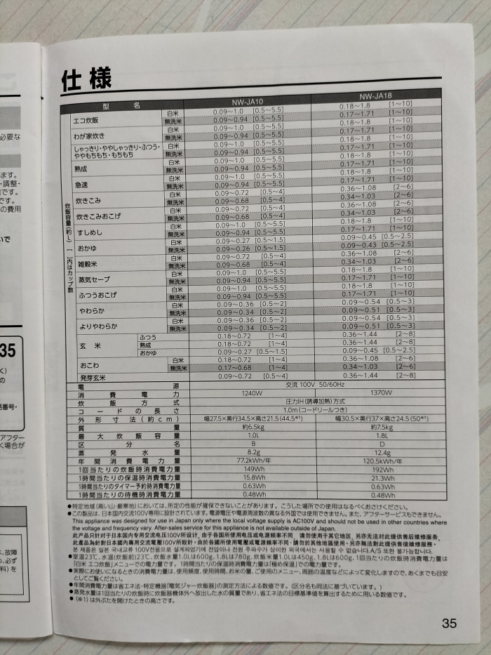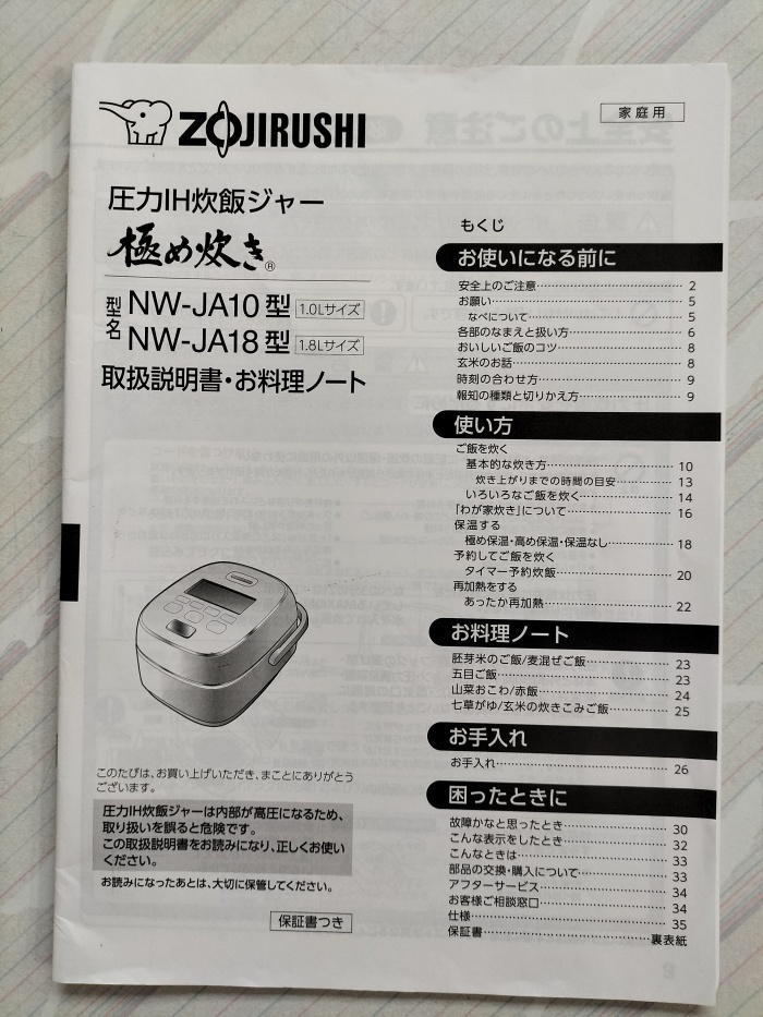 ***<商品の説明について>***☆取扱説明書のみ極め炊き NW-JA10,NW-JA18●状態形名は画像にてご確認お願いいたします。若干のシワ、角曲がり有る場合もあります。(画像にてご確認お願いいたします)中古品になりますので神経質な方はご遠慮ください。中古品のため多少の使用感や汚れ、角折れがありますが、全体的にはしっかりと読める状態です。商品の状態判断について個人差があり、見落としがある場合がありますのでご了承ください。 古いものですので、経年劣化があります。●対象型番 NW-JA10,NW-JA18***<返品・交換について>***商品の返品および交換は受け付けておりません。 ただし、商品の発送間違えなど当社原因による場合には、返品を受け付けさせていただきます。商品到着後、3日間以内にお電話ください。 発送後の商品(中古品、未使用品を含む)につきましては、返品、交換はお受けできません。 なお、お客様の都合による返品は受け付けておりません。 予めご了承ください。 クーリングオフの適用は御座いませんのでご注意下さい。(特定商取引法の「通信販売方式」)