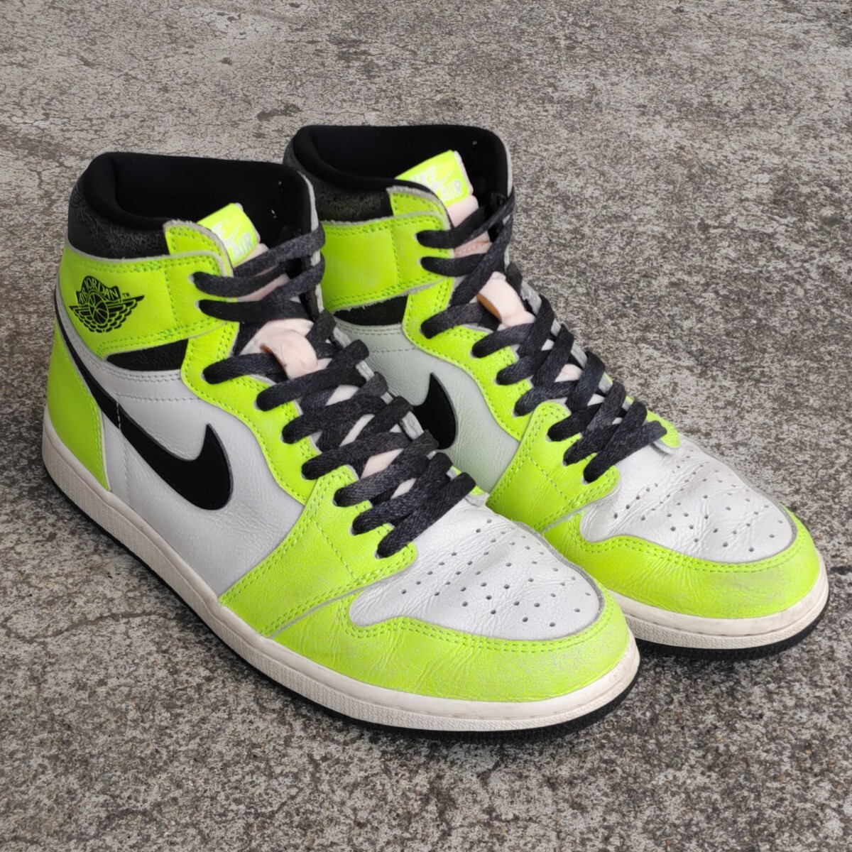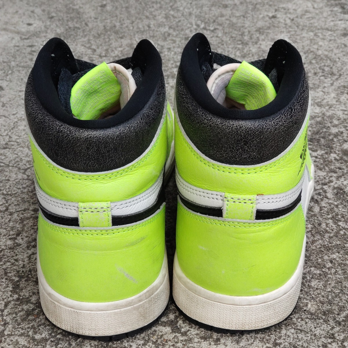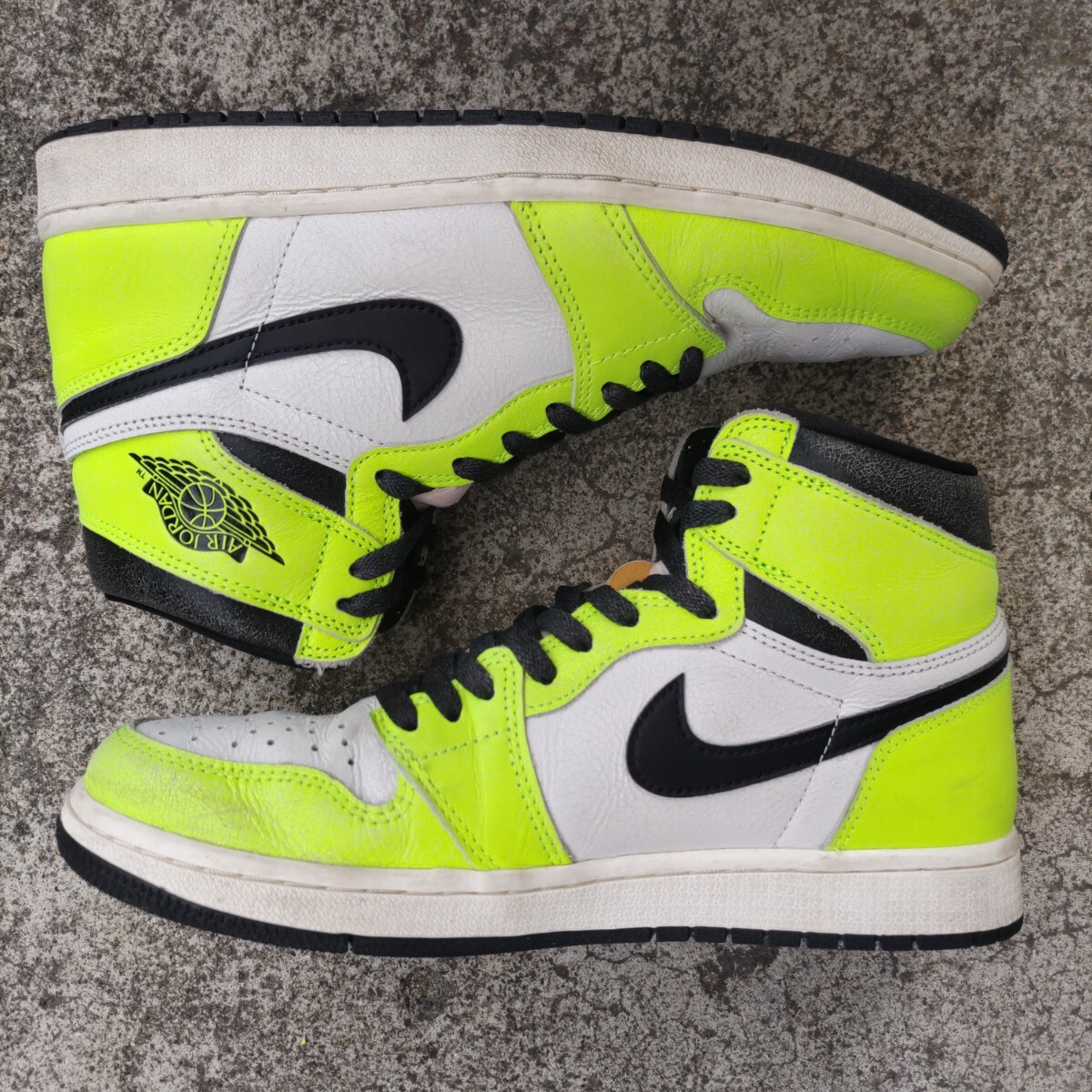 ●ブランド:NIKE (ナイキ) ●モデル名:AIR JORDAN 1 RETRO HIGH OG (エア ジョーダン 1 レトロ ハイ オージー) ●品番:555088-702 ●発売時期:2022年7月ごろ ●素材:天然皮革+合成繊維 ●生産国:中国 ●色:ボルト/ブラック/セイル ●状態:中古箱無し ●サイズ:JPN 27.0cm | USA 9.0 ●サイズ構造について 少し横幅の狭い構造となっております。 サイズ感はあくまで出品者の感覚です。サイズ感に関しましては個人差が御座います。 ●コメント 2022年に発売された「AIR JORDAN 1 RETRO HIGH OG」の中古品。 ネオンカラーを採用したド派手なカラーリングが印象的なモデル。 SWOOSHとアンクルパットにはヴィンテージ感を演出したクラック加工が施されております。 左右のつま先に擦れた傷があります。 左右の踵(特に左足)に擦れた傷があります。 ライニングには少し毛玉が有ります。 インソールのプリントはほとんど残っています。 靴紐は別紐を使用していたので未使用です。 黒タグと替紐も有ります。 アウトソール踵の外側の溝が擦り減って薄くなっています。(画像9枚目参考) ●備考 国内代理店の正規品です。 画像に有るものが全てとお考え下さい。 中古品のため商品画像や説明を良く確認の上でご入札をお願いします。 箱付きですが箱には擦れや凹みが少し有ります。 輸送過程で汚れや傷が付く可能性が御座いますがご理解下さい。 商品を確認出来ないお取引の特性から繊細な方や神経質な方は入札しないで下さい。 製造過程の縫製のズレや歪み・汚れ・傷・付着接着剤に関しましてはご容赦下さい。 不明点や確認点は質問して回答を確認し解決してからご入札下さい。 ディスプレイ機器やご観覧環境で画像と実物で色合いが異なる場合が御座います。 色合いが気になる場合は品番をネット検索して他の画像の色合いも確認してみて下さい。 このブランドのサイズ構造に認識が無い方は入札はしないで下さい。 天然皮革部分は素材特性から左右で質感が異なる場合が御座います。 ★Yahoo!かんたん決済以外の支払方法は対応しておりません。 ★決済(お支払い)は落札日から4日以内の完了でお願いします。 ★領収書の発行は出来ません。