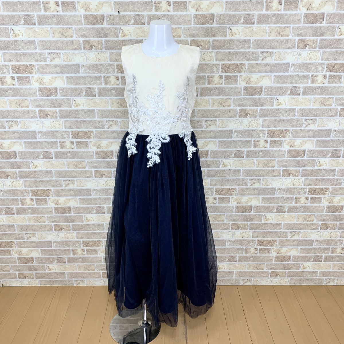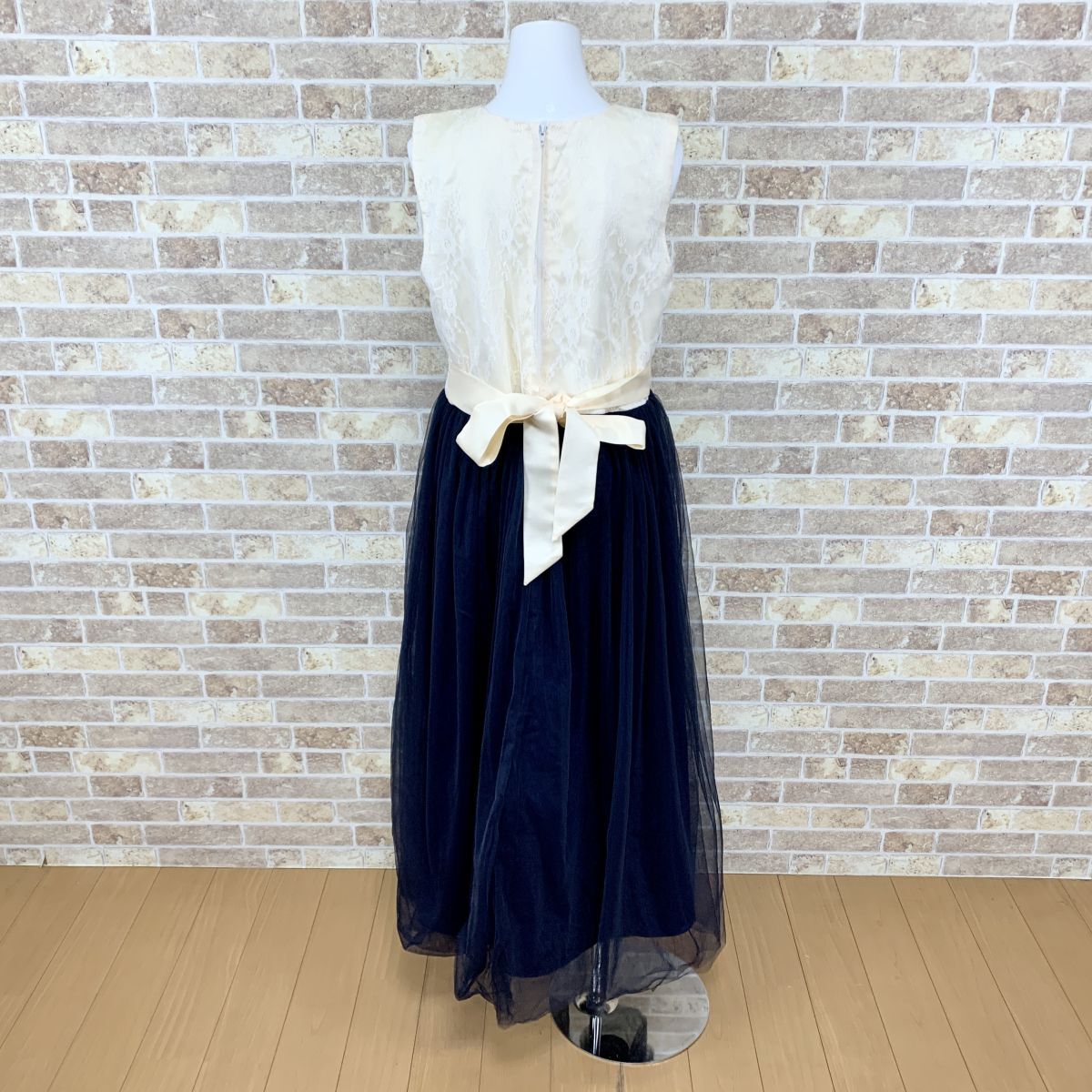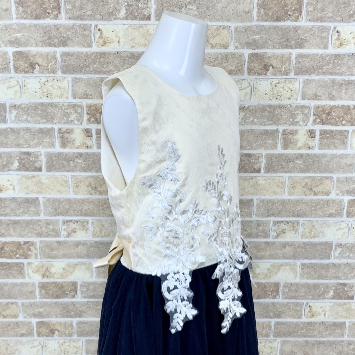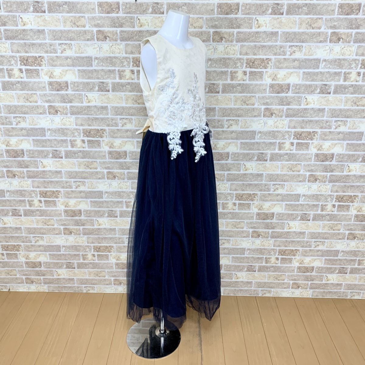 子供ドレス ワンピース 150 ベージュクリームネイビー系 カラードレス 発表会 イベント 中古13940