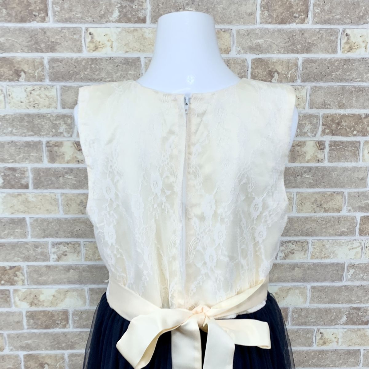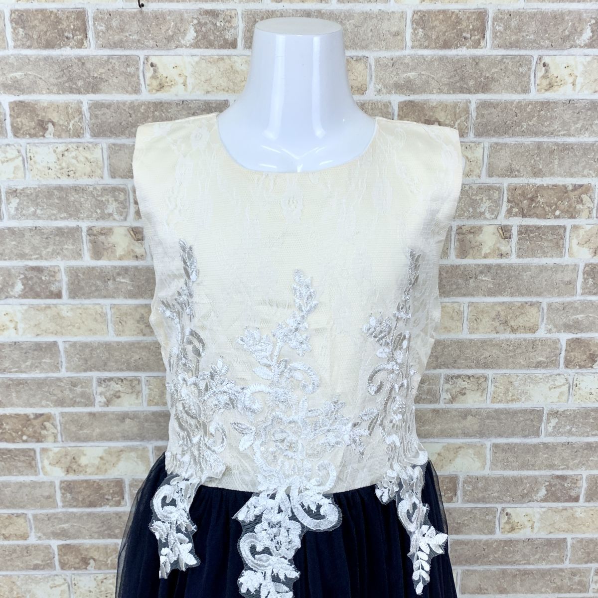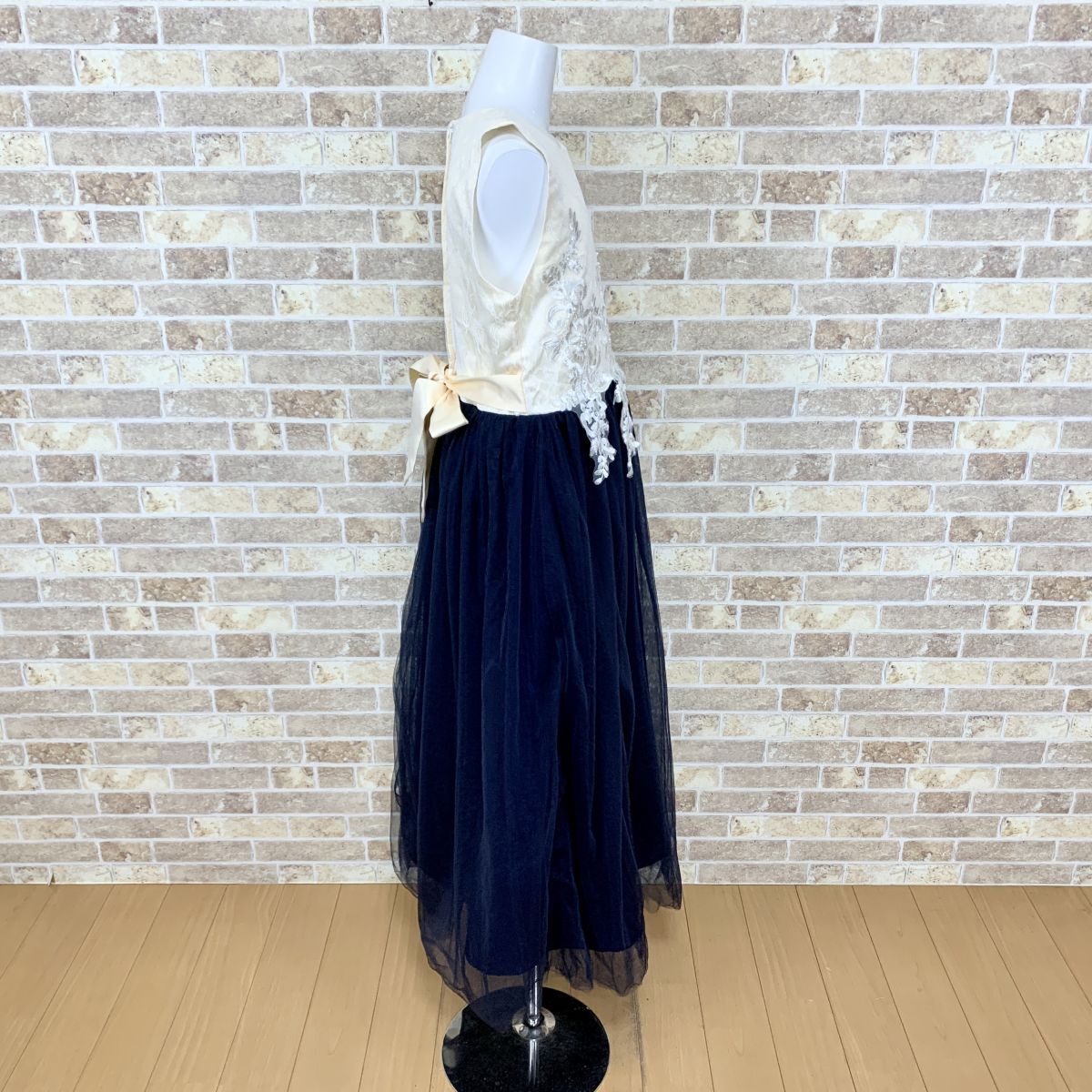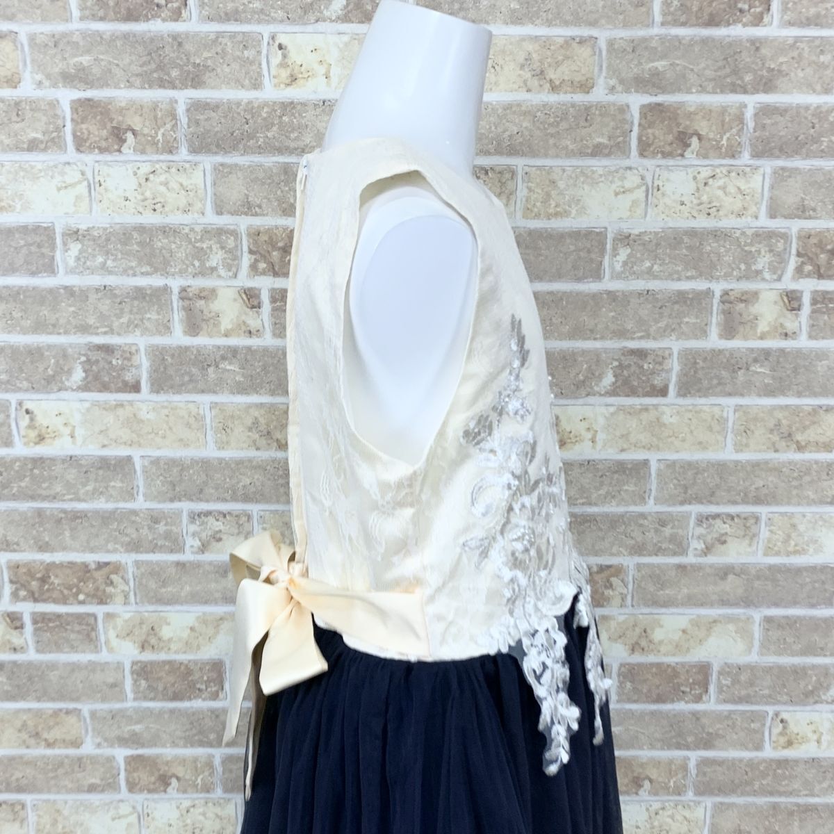 子供ドレス ワンピース 150 ベージュクリームネイビー系 カラードレス 発表会 イベント 中古13940