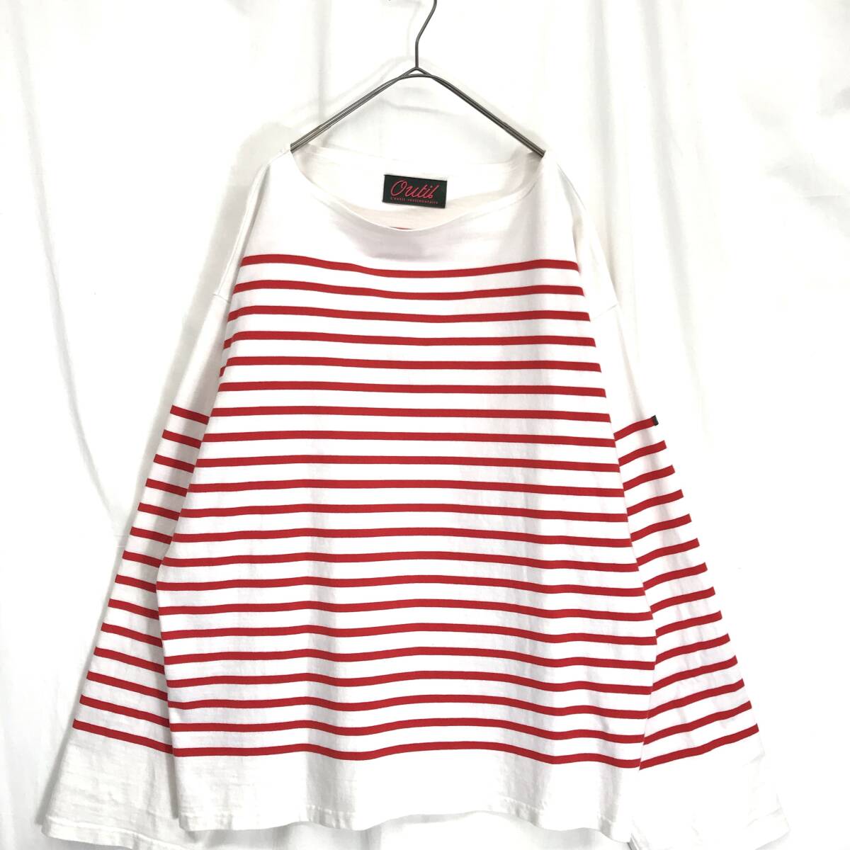 NZ2355●outil : TRICOT AAST ボーダーバスクシャツ★2★白×赤 オーバーサイズ 長袖 トリコア ウティ