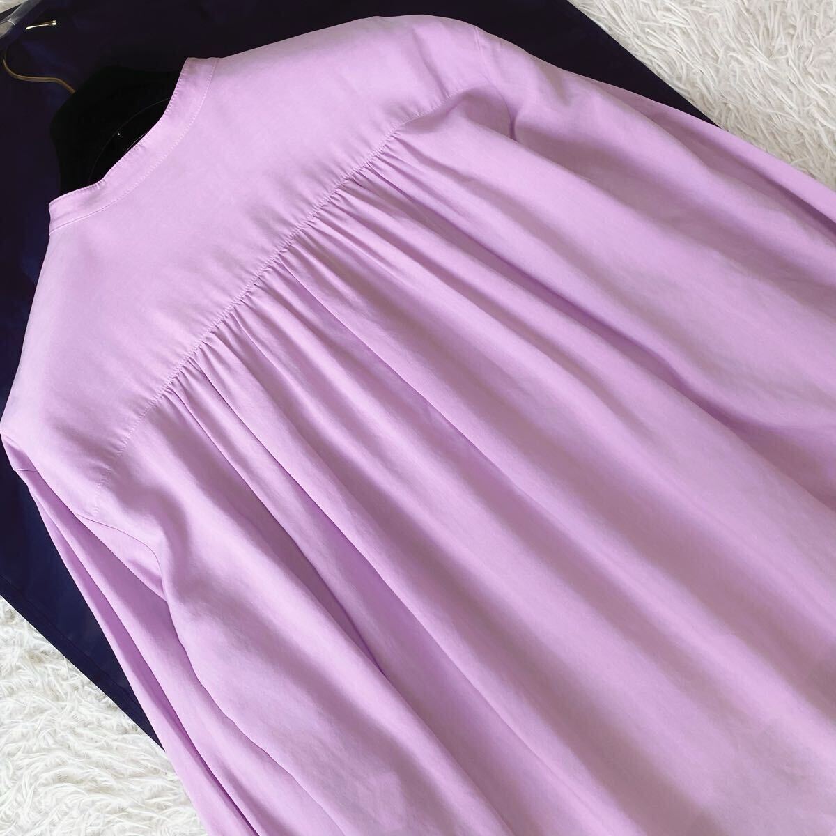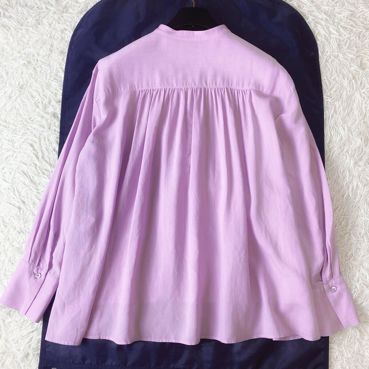 フロントにピンタックを施したブラウス。肘の隠れる長めのハーフスリーブで、スタンドカラーが顔周りをすっきりと見せてくれます。シアーな素材感と身頃のフレアシルエットで、涼しく着ていただけます。