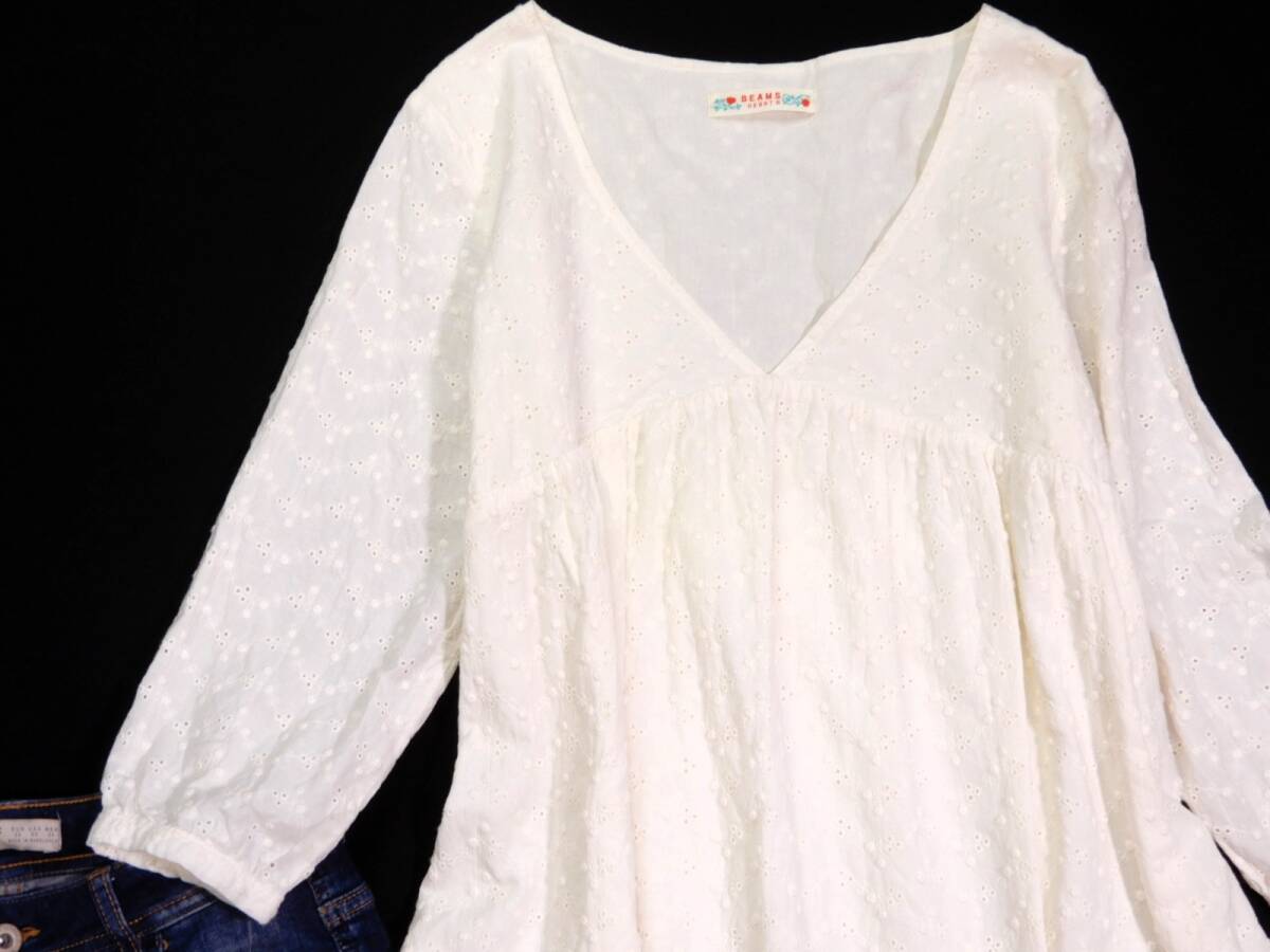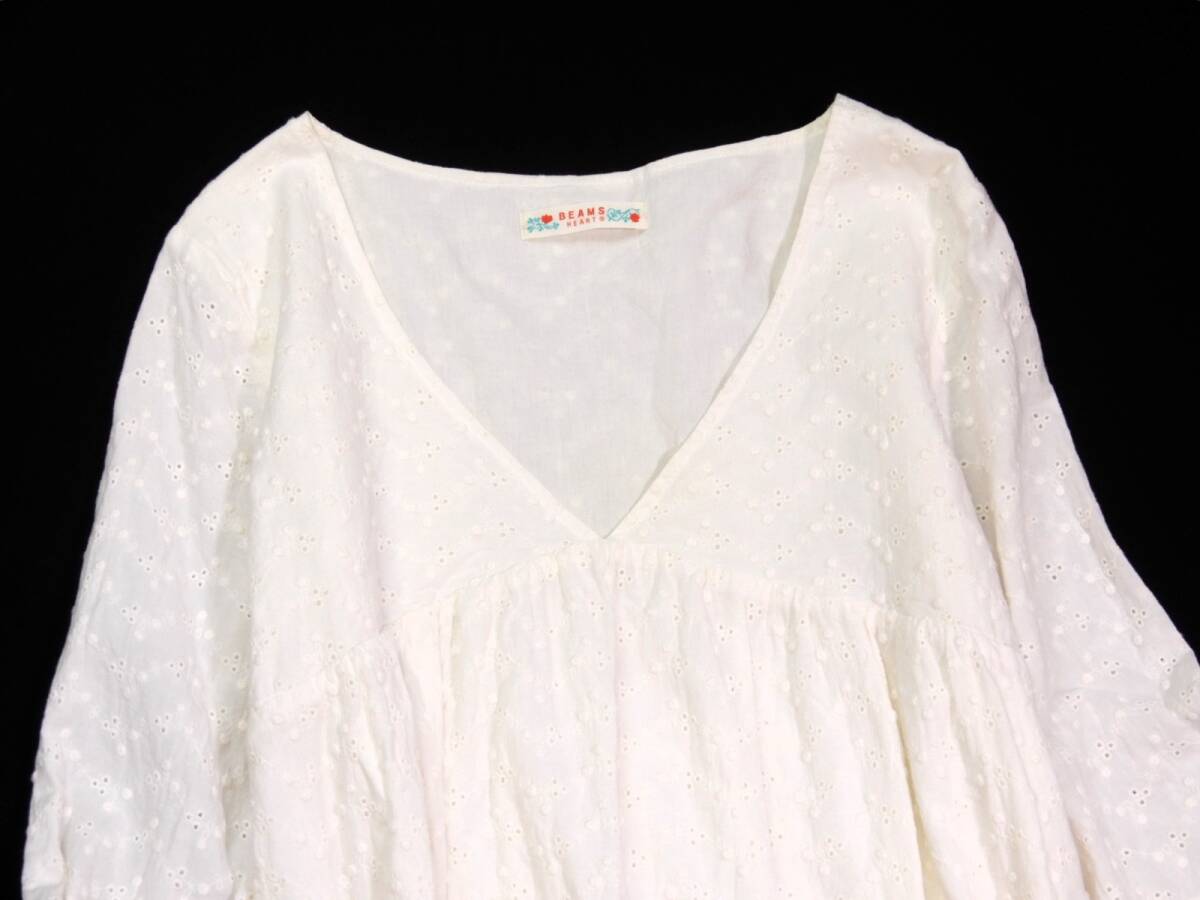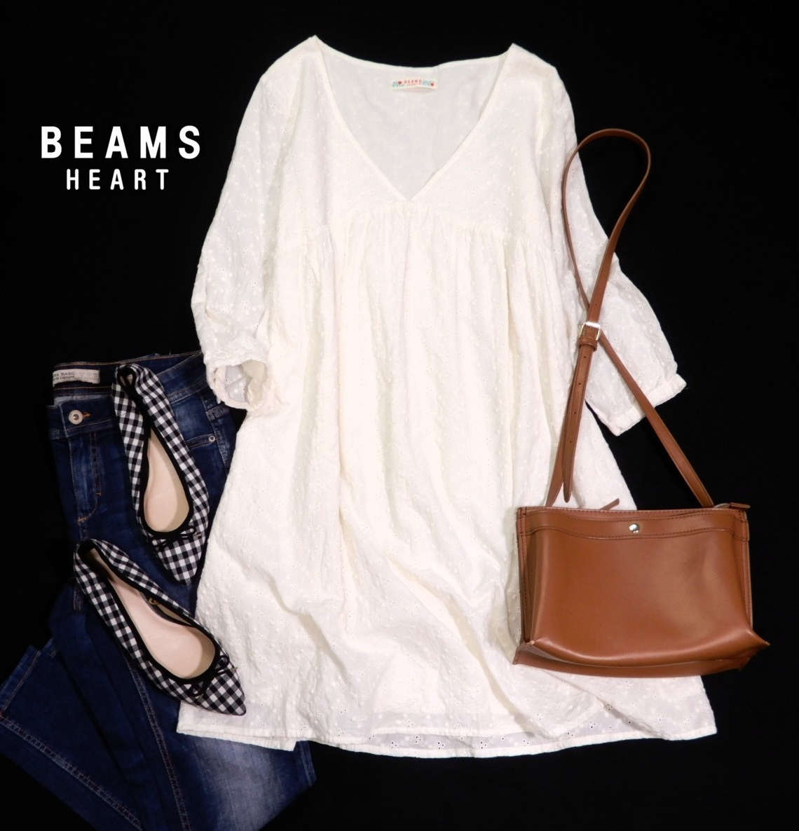 ビームスハート ビームス BEAMS HEART 大人可愛い☆ Vネック カットワーク刺繍 切り替えギャザー デザイン チュニック ワンピース