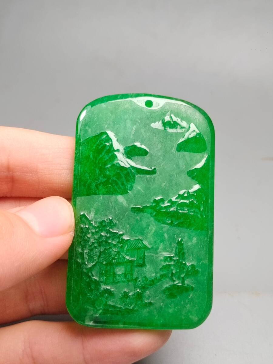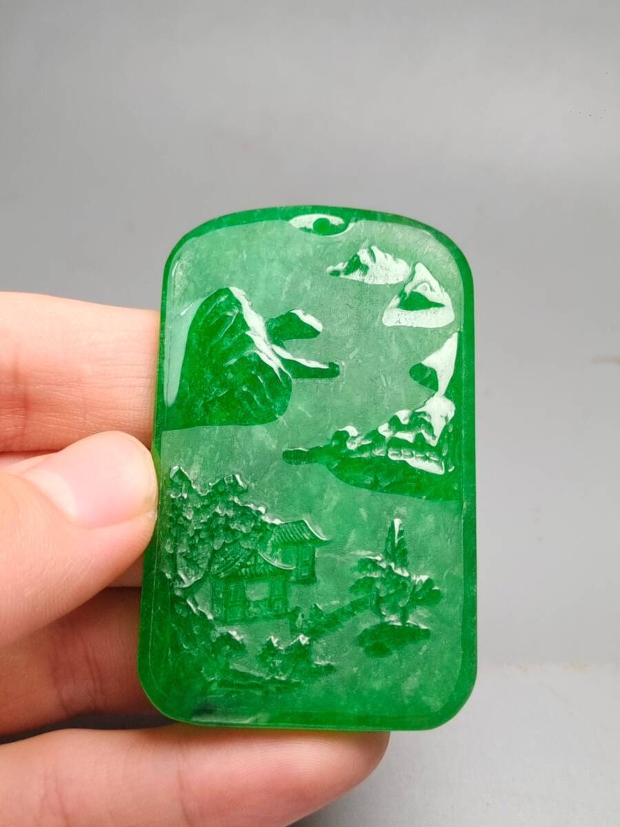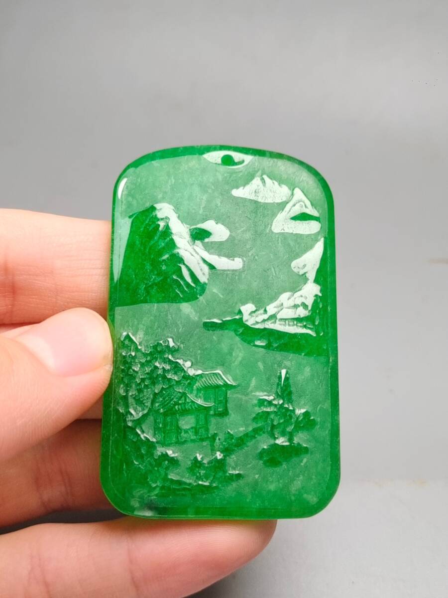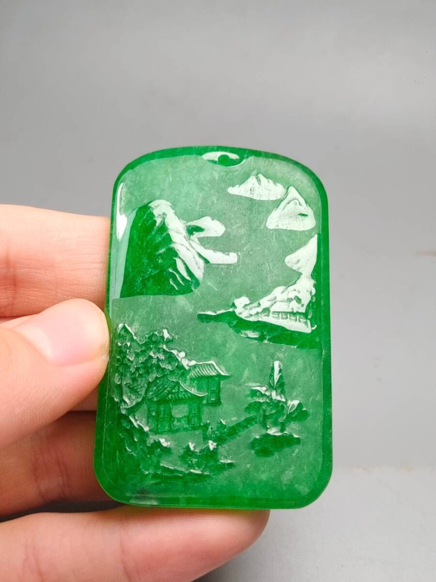 | 【古寶奇蔵】翡翠製・細密彫・山水ペンダント・根付・裝身具・古董品・中国古玩・時代物・希少珍品・中国時代美術 |