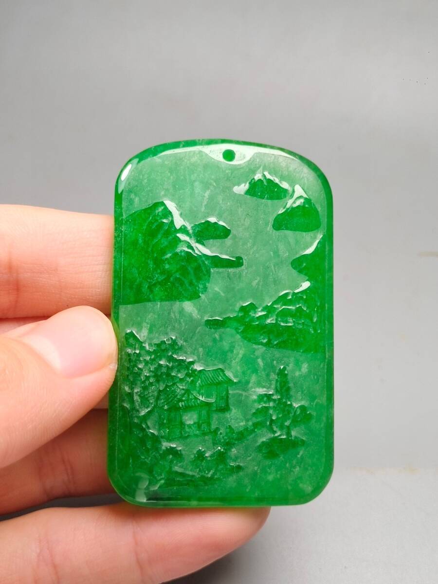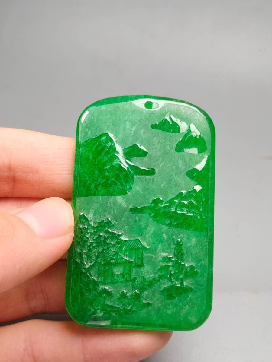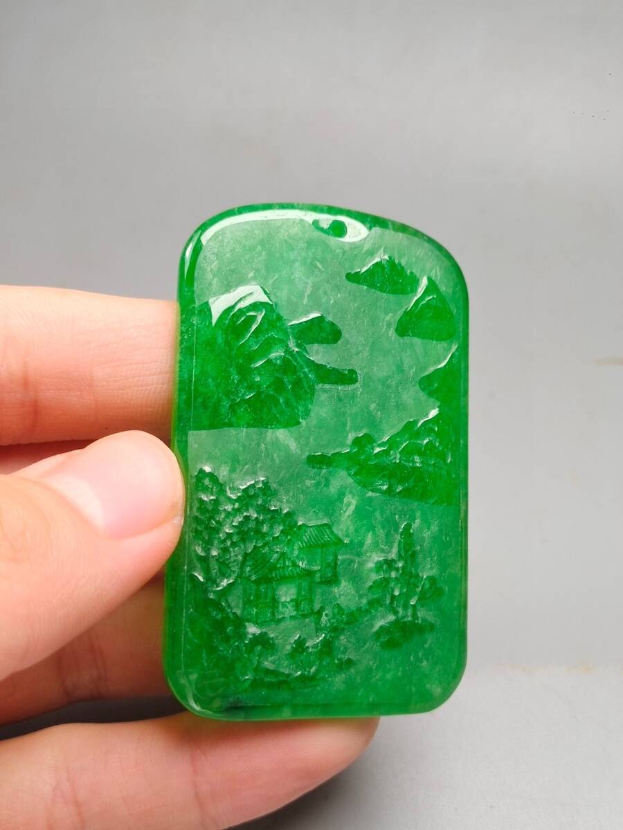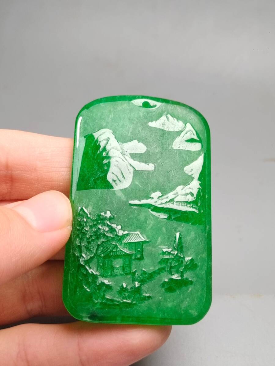 | 【古寶奇蔵】翡翠製・細密彫・山水ペンダント・根付・裝身具・古董品・中国古玩・時代物・希少珍品・中国時代美術 |
