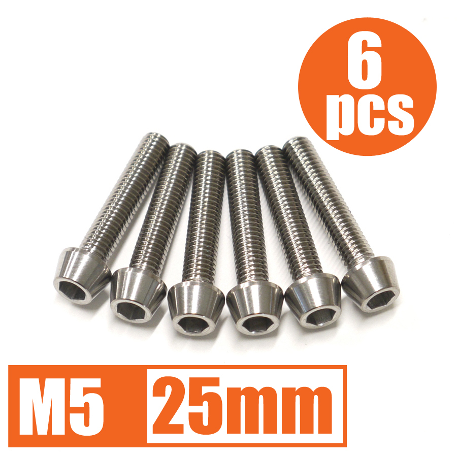 64チタン合金ボルト M5×25mm P0.8 6本セット テーパーキャップ ゆうパケット対応 焼き色なし Ti-6Al-4V
