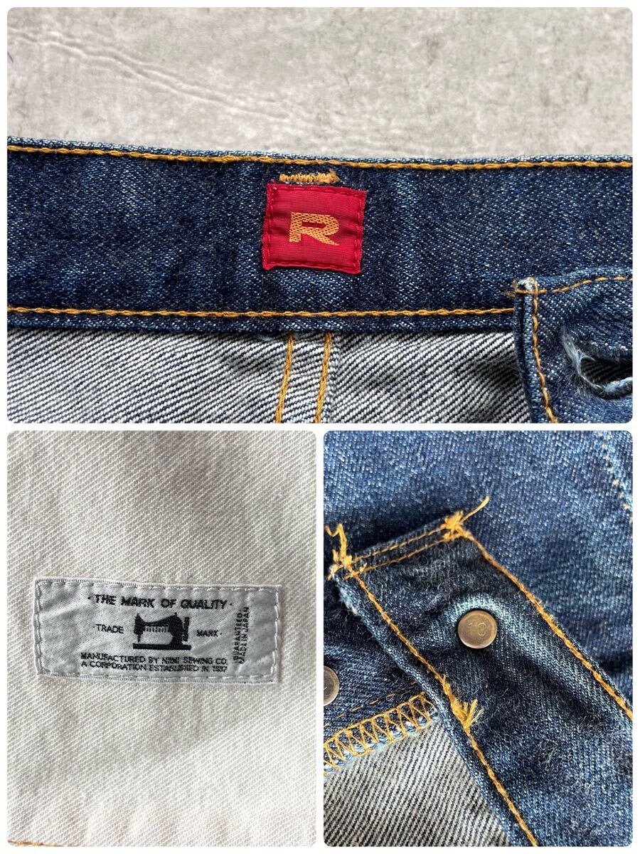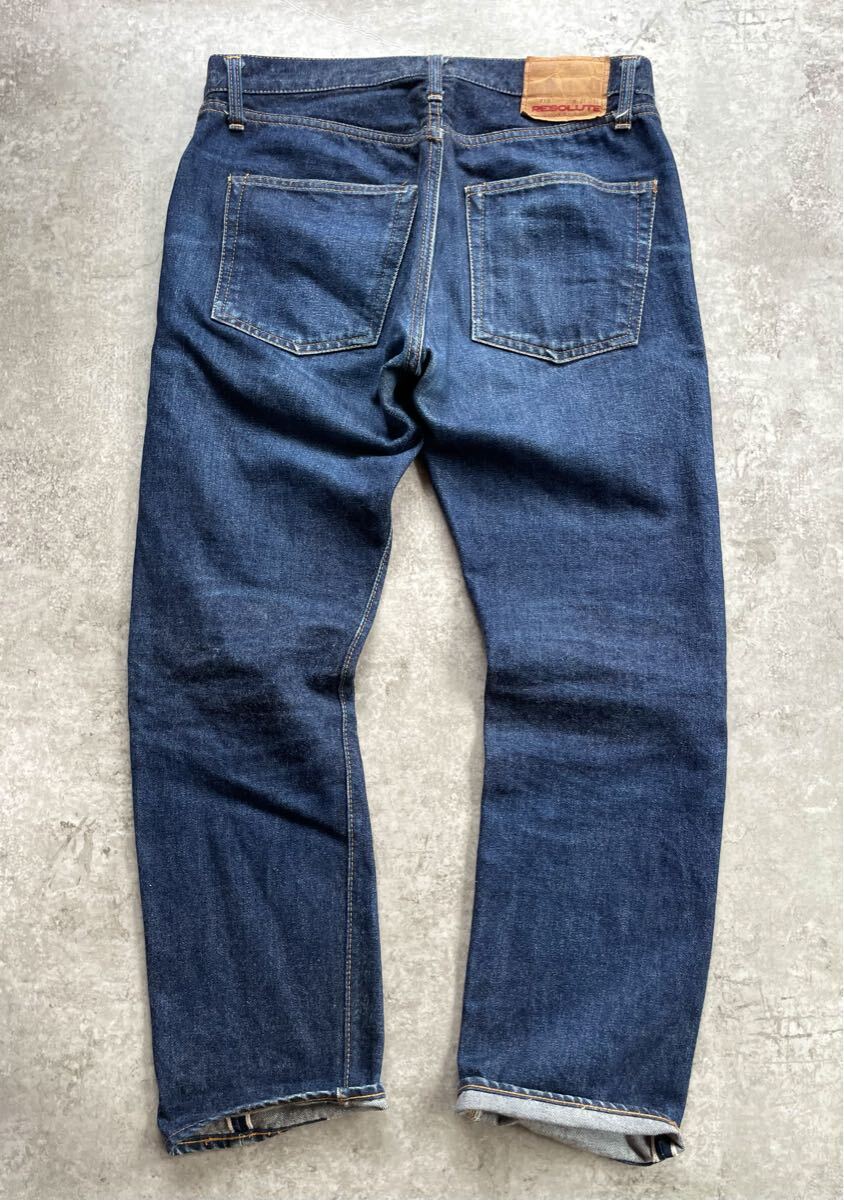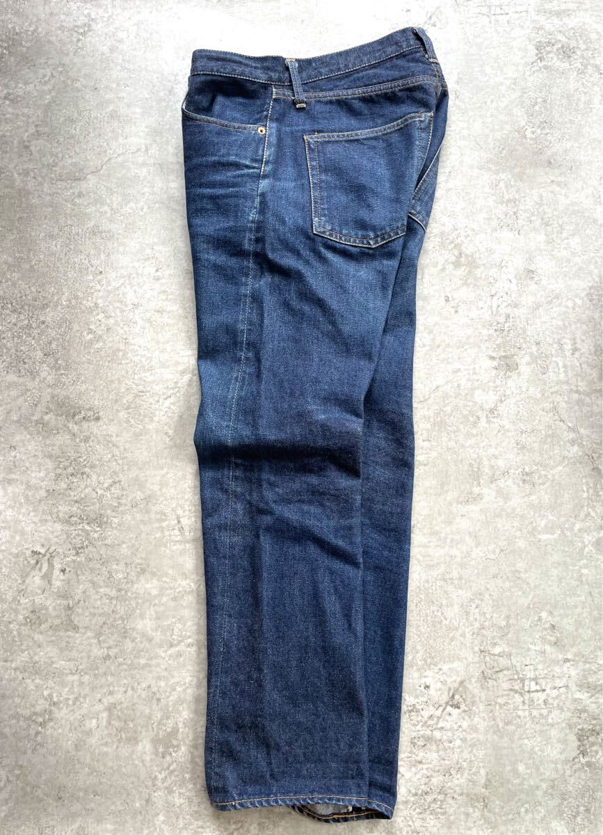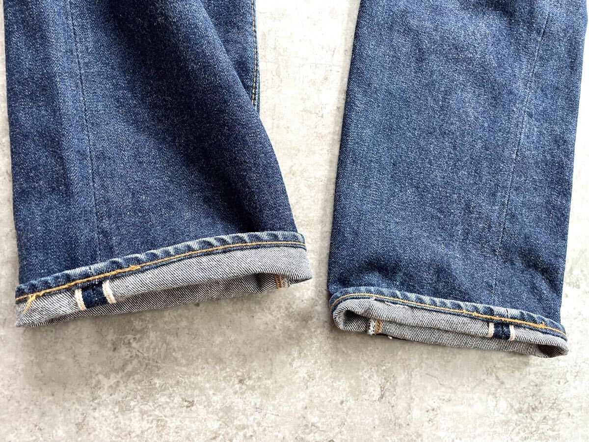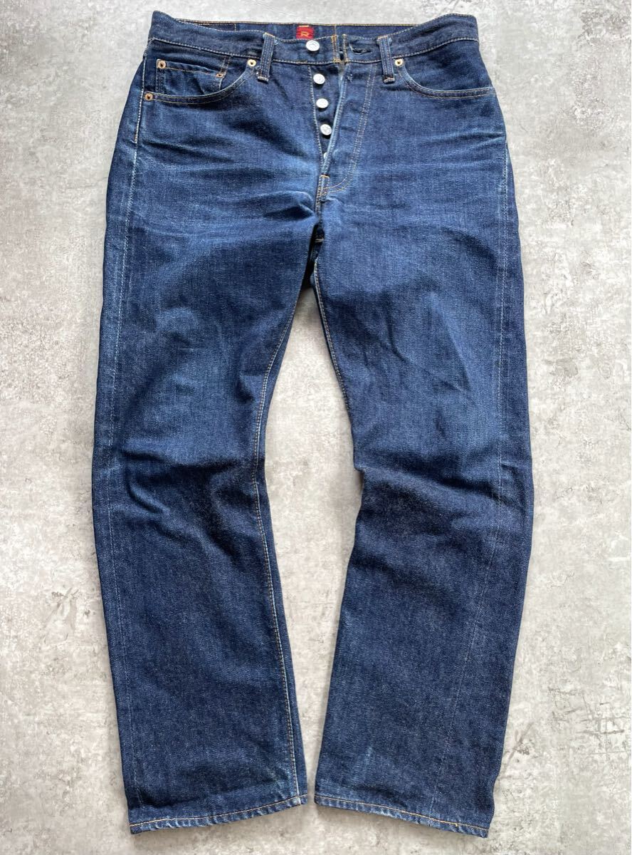 使用感、多少色落ちがあり、フロントボタン付近に小さいほつれ、股下にスレがあります。