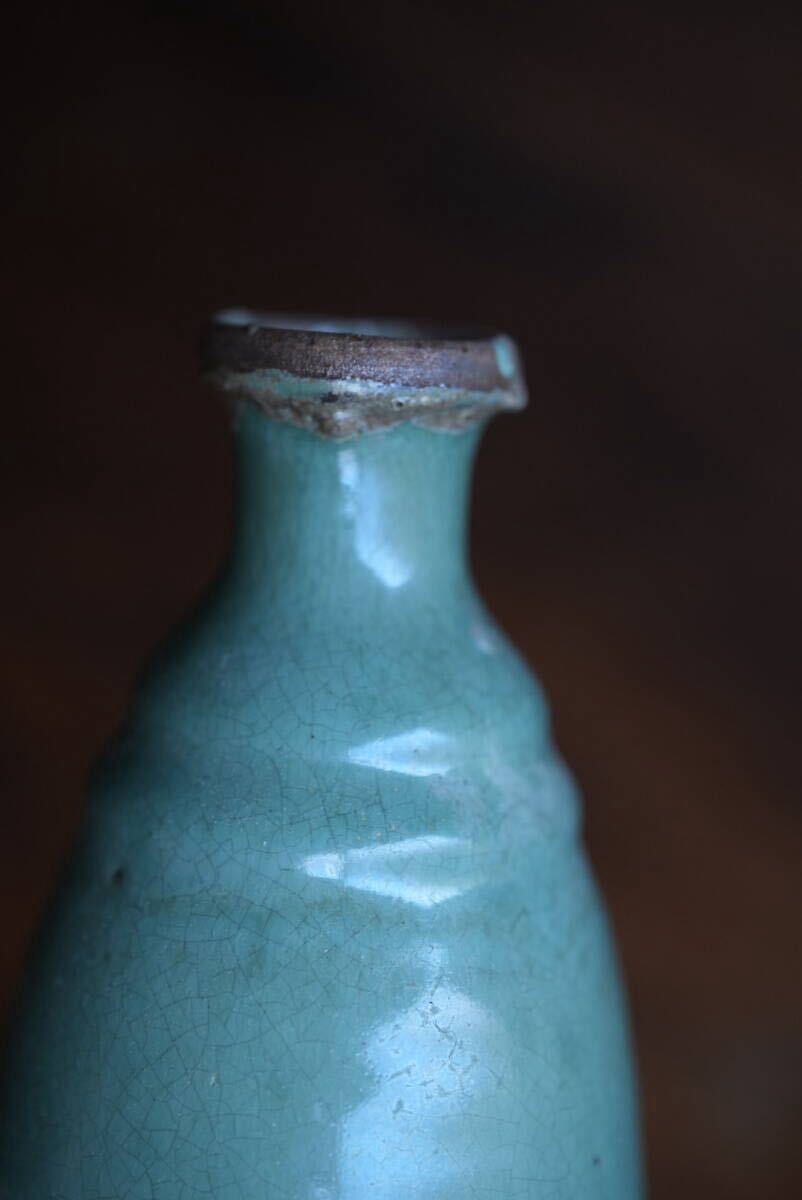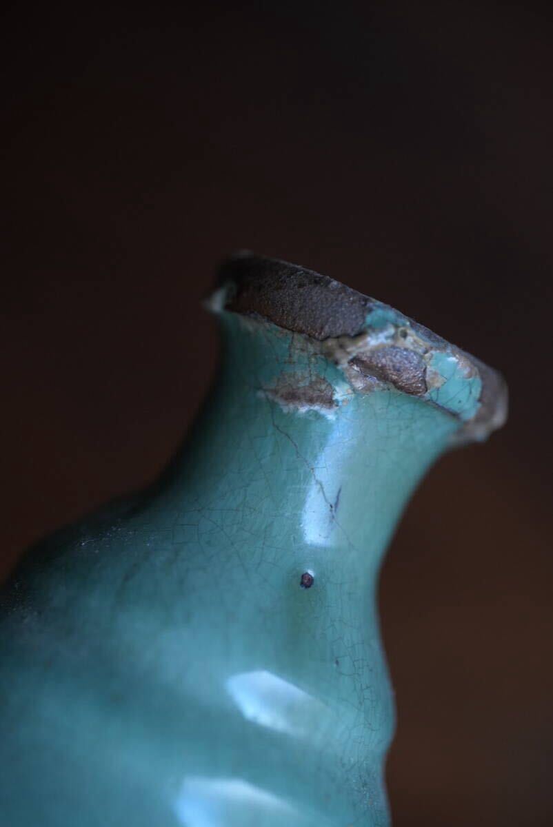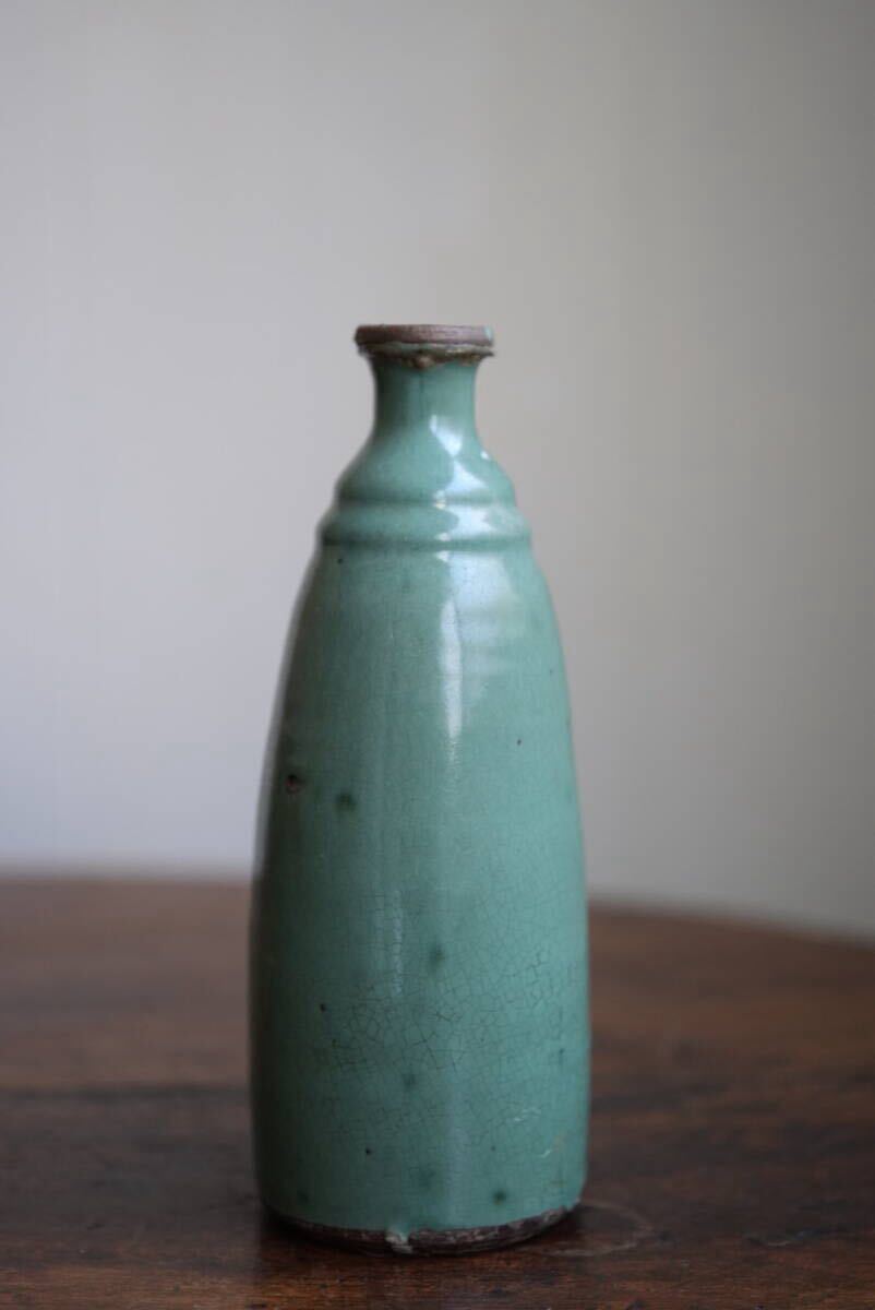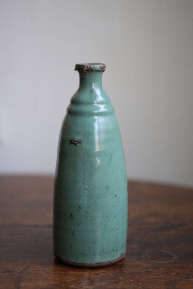 古い越中小杉焼 緑釉徳利 酒注 / 江戸幕末 / 花器 花入れ 古道具 アンティーク 骨董 民藝 酒器