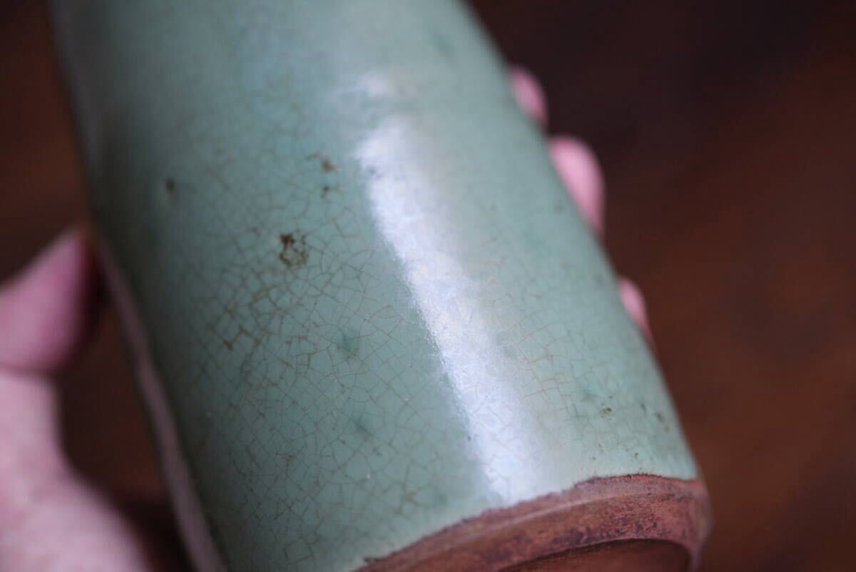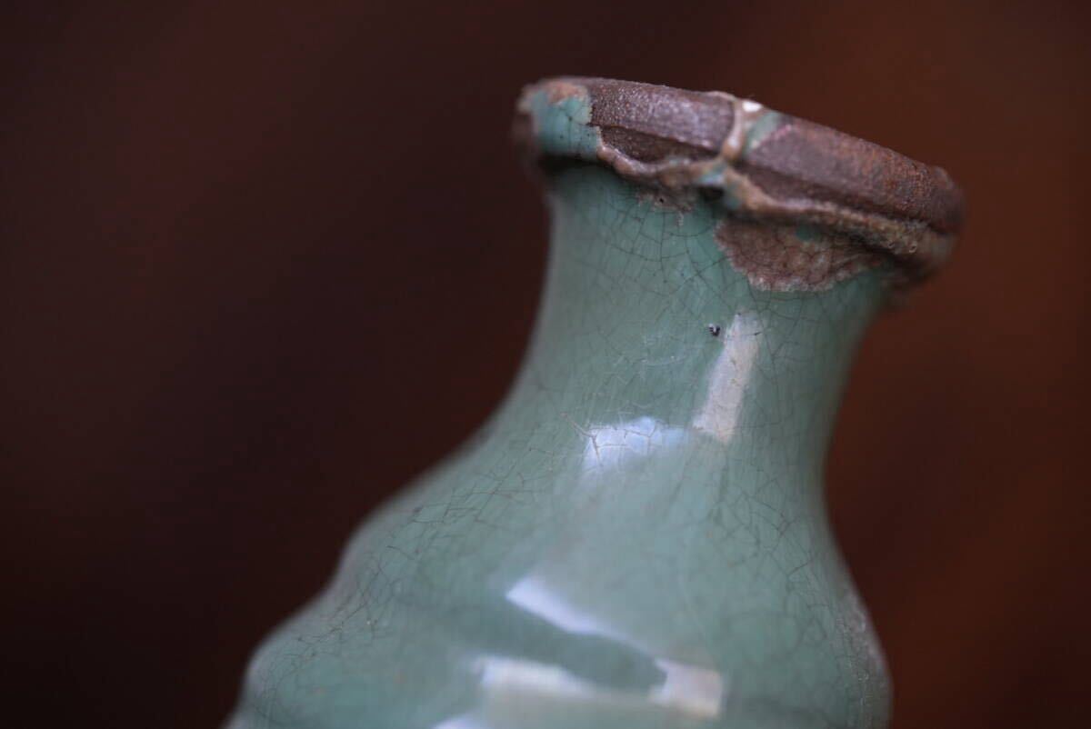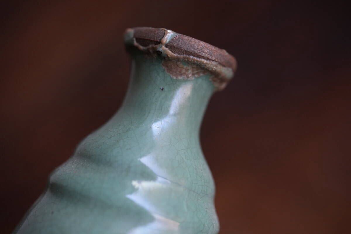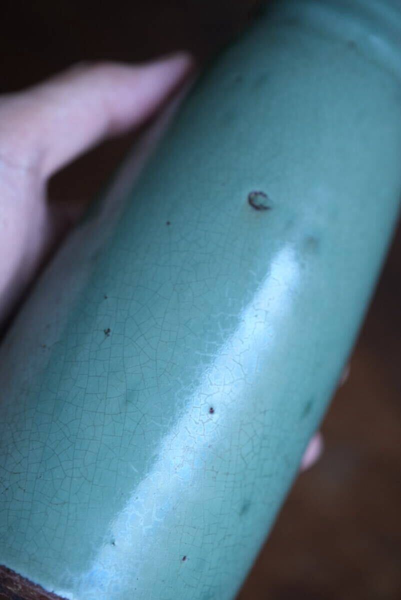 古い越中小杉焼 緑釉徳利 酒注 / 江戸幕末 / 花器 花入れ 古道具 アンティーク 骨董 民藝 酒器