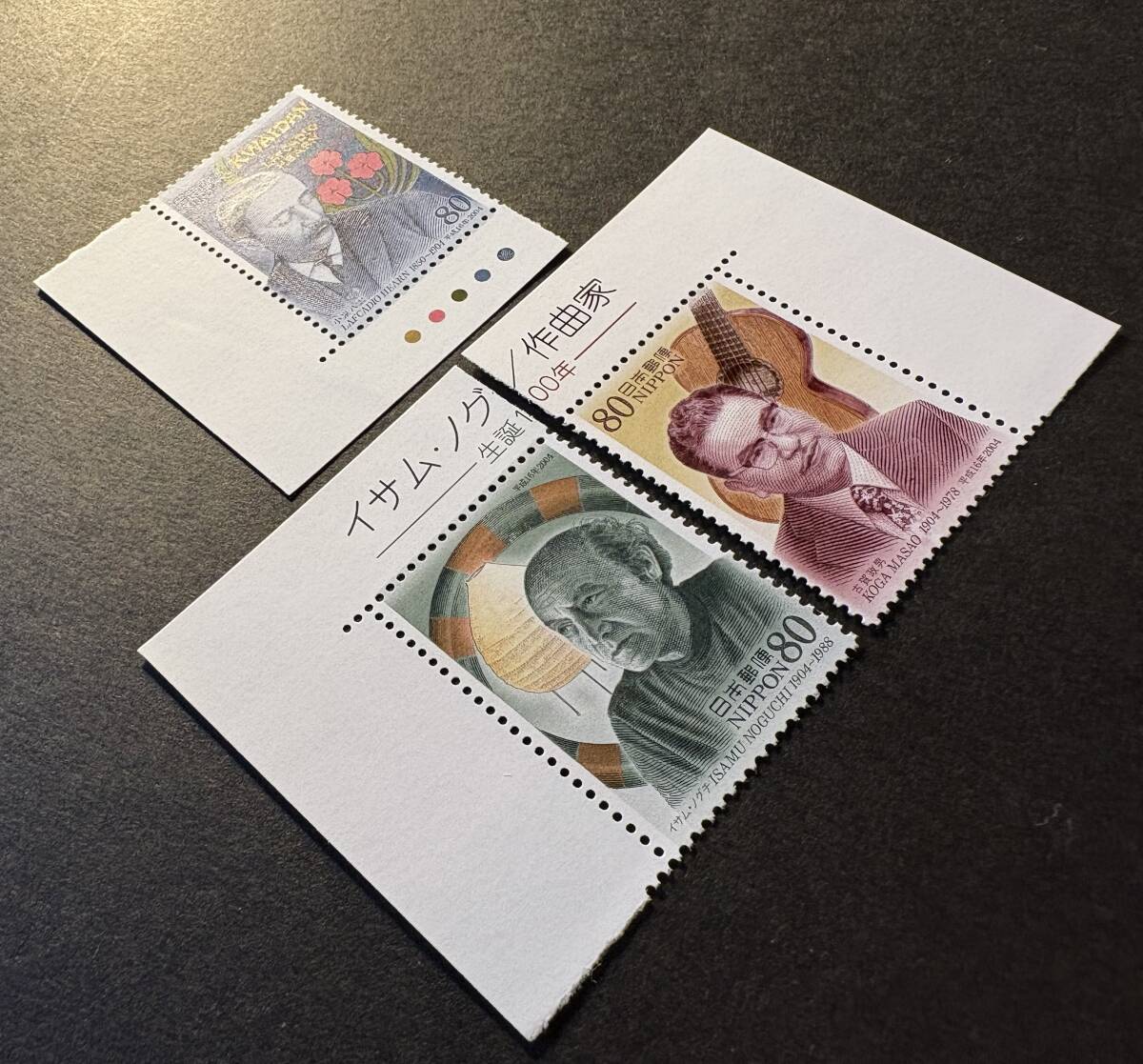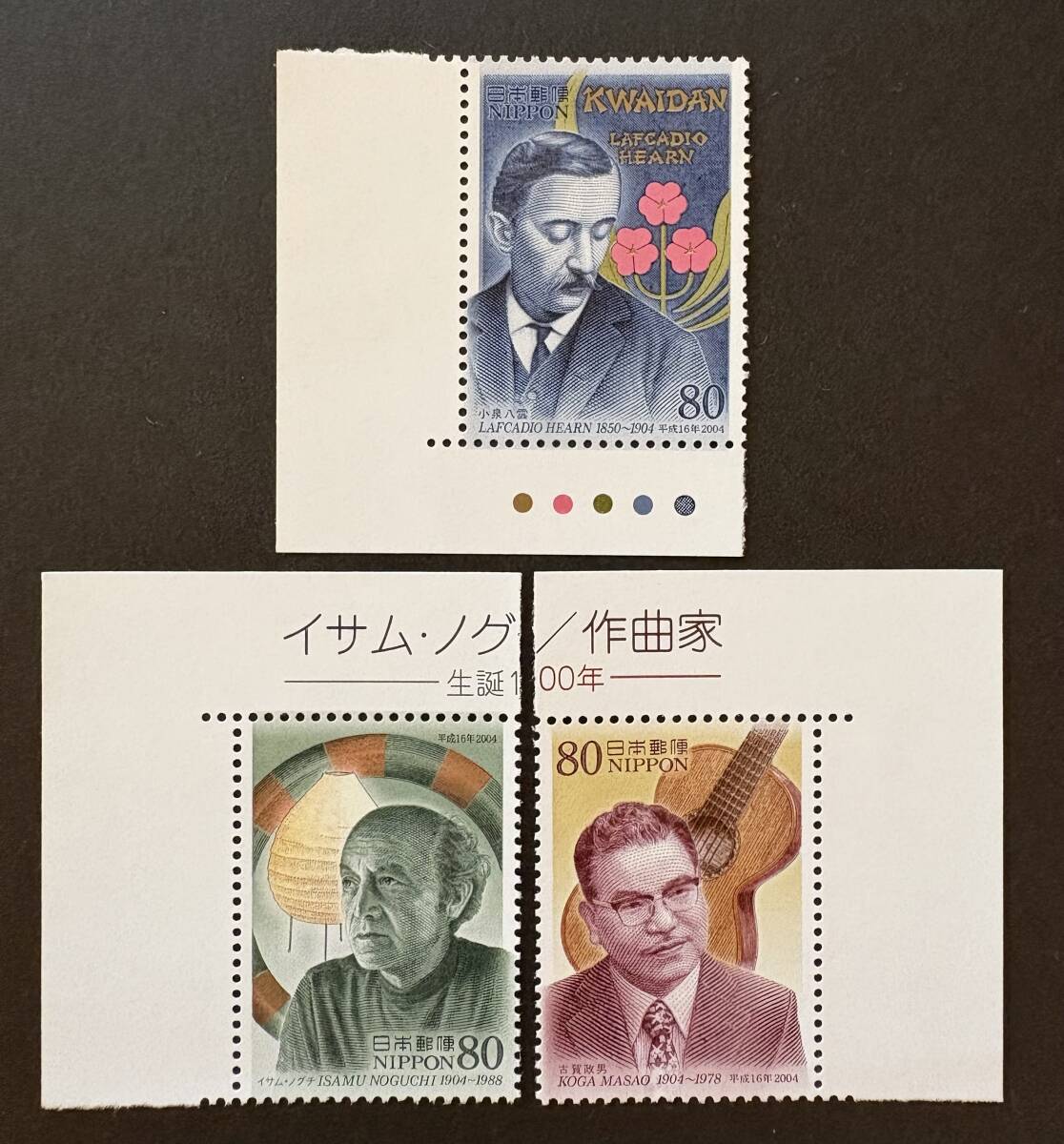 ★記念切手 平成16年文化人 2004.11.4 小泉八雲/イサム・ノグチ/古賀政男 単片 各一片 未使用