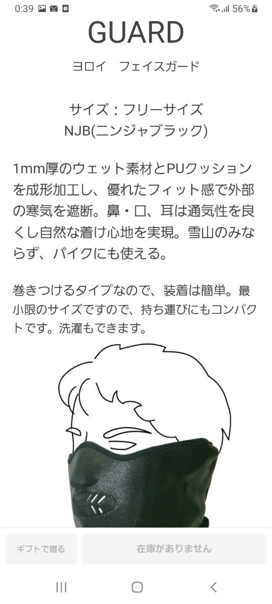 OROI FACE GUARD ヨロイ フェイスガード ウェット素材のフェイスガード スノーボード 鎧 プロテクター スノボ スキー フェイスマスク
