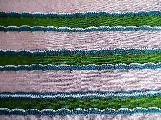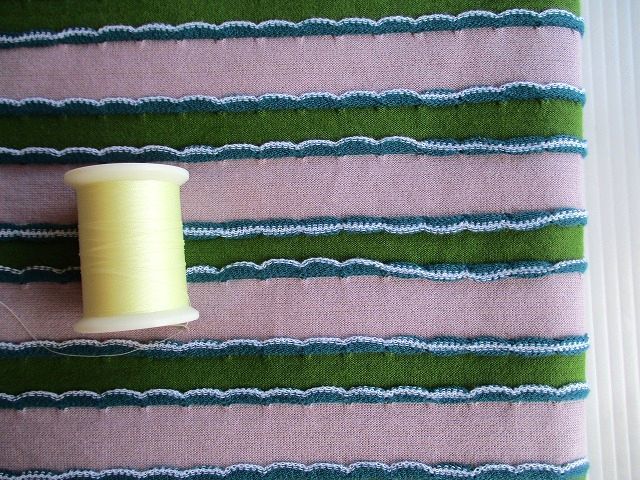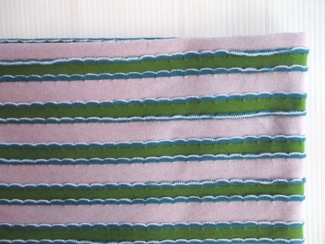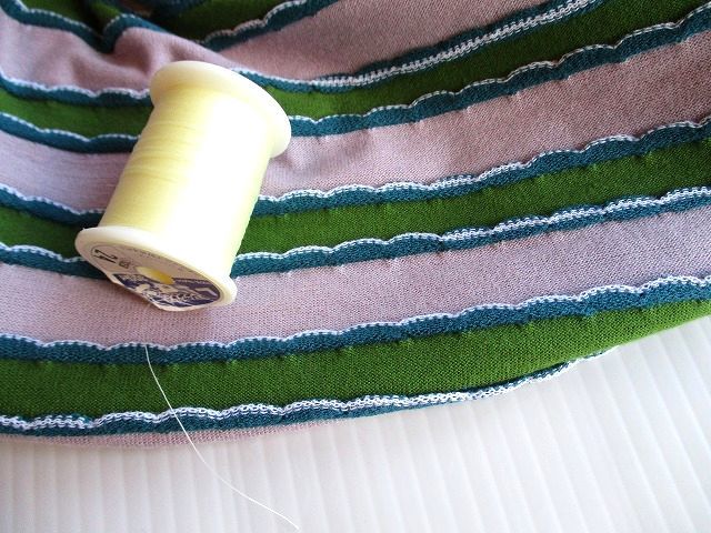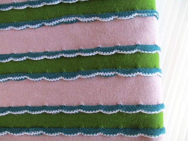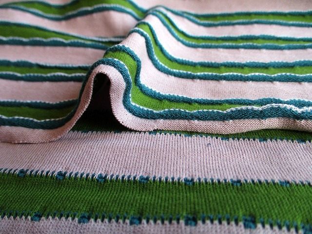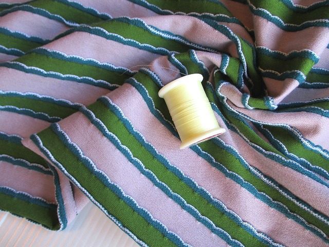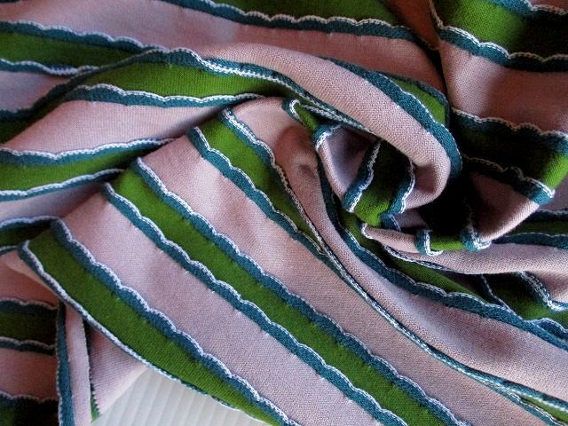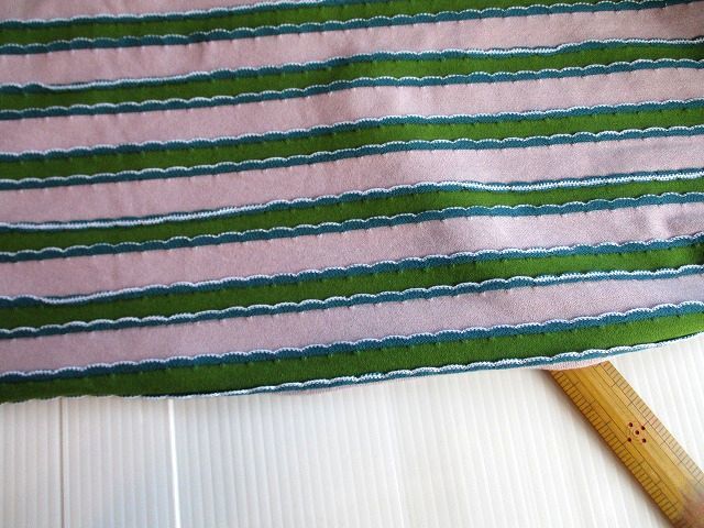 | ◆パープルピンク×グリーンふりふりボーダーニット生地*180超広巾 | |||