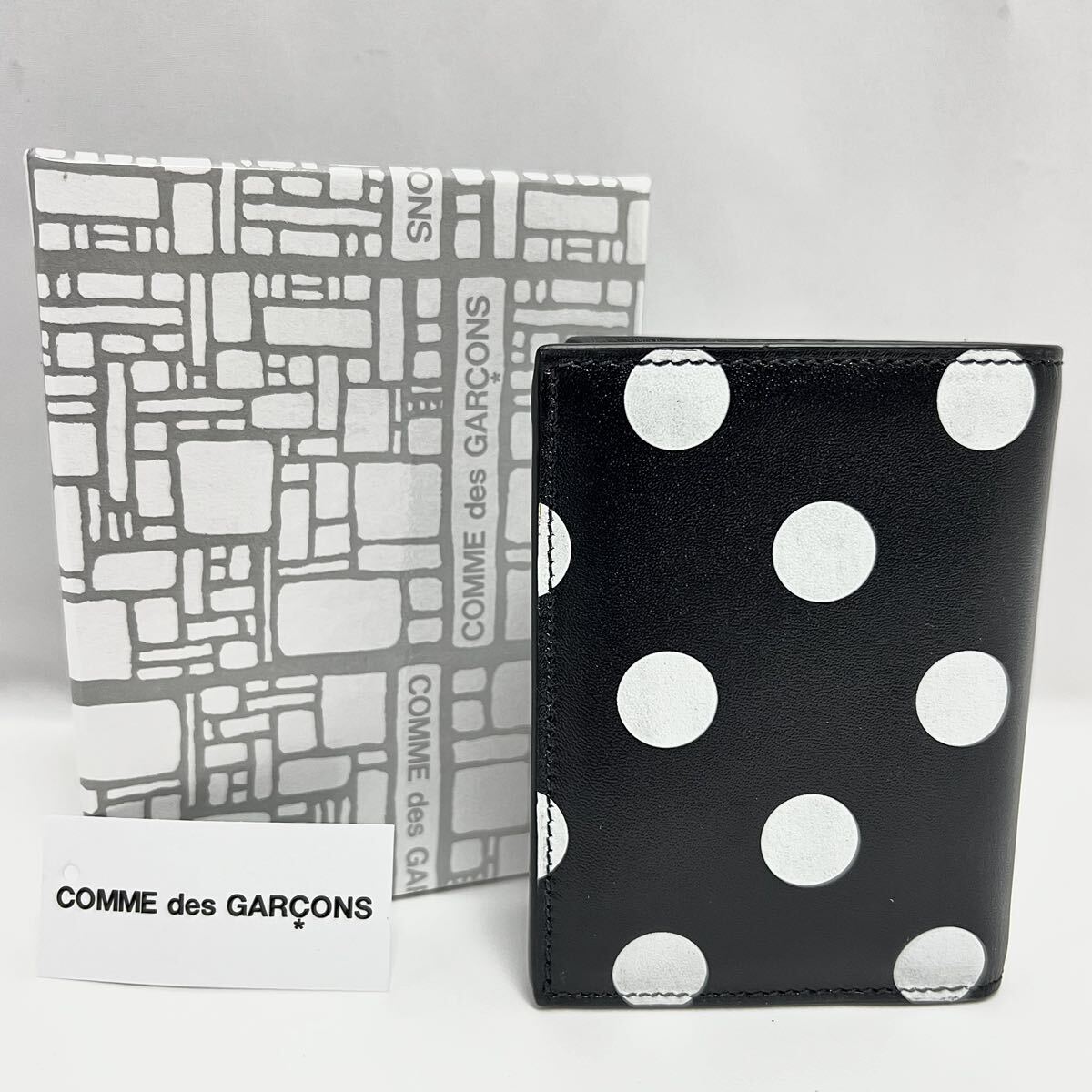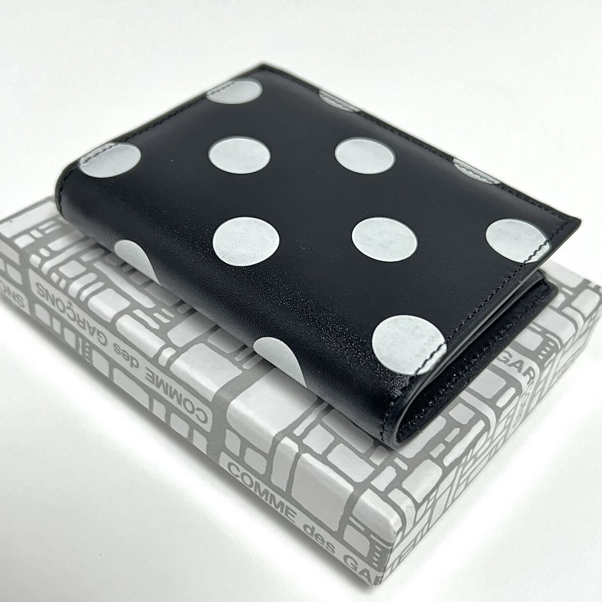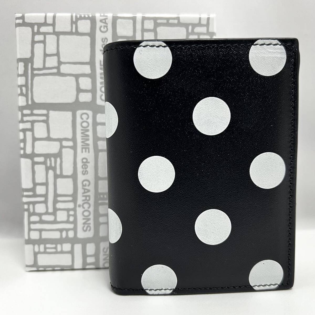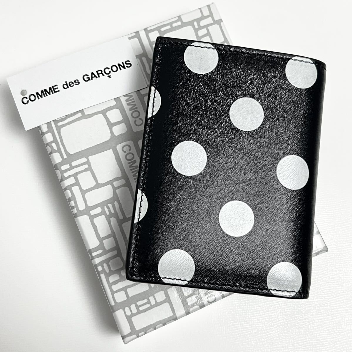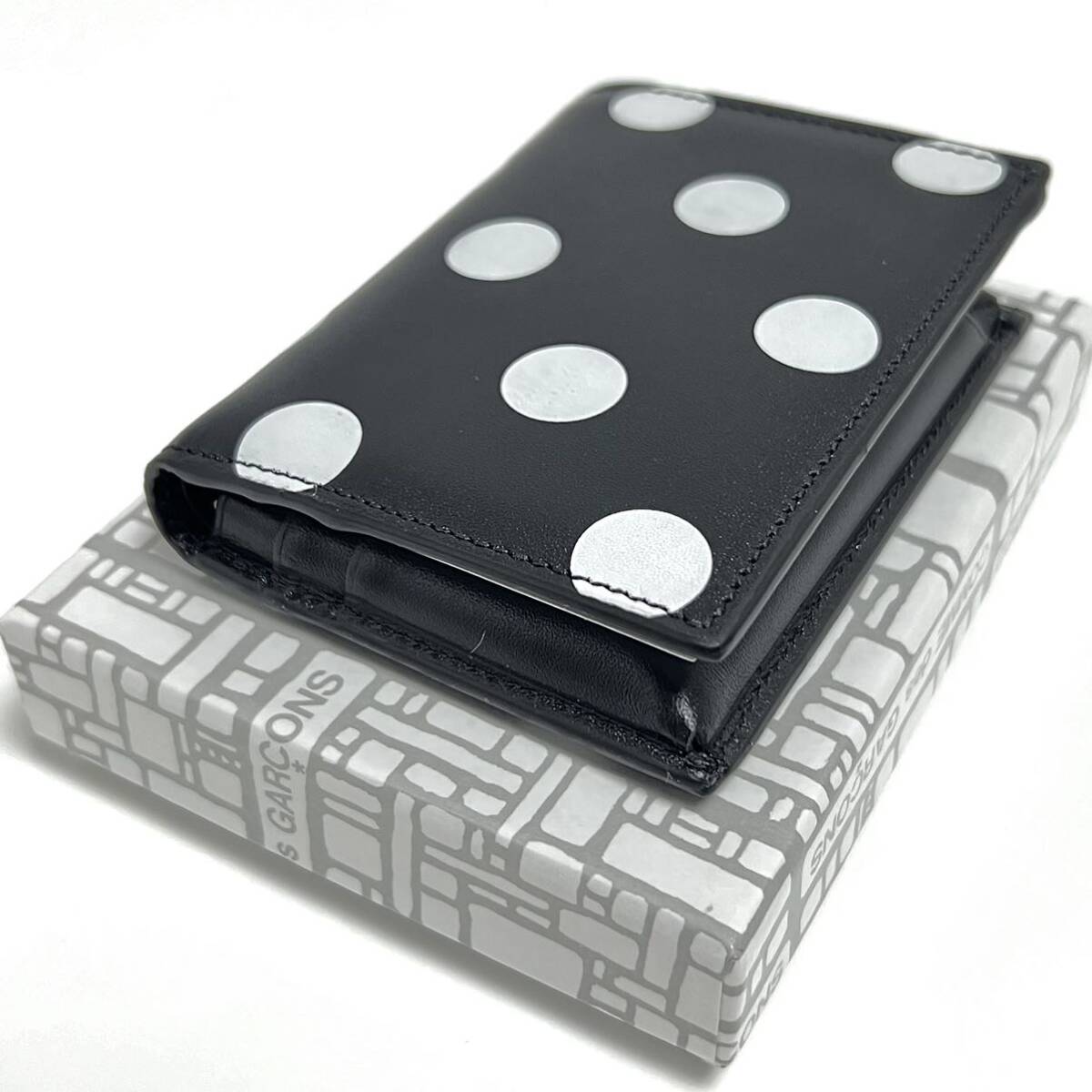 新品 コムデギャルソン レザー ウォレット 財布 WALLET COMMEdesGARCONS ブラック ギャルソン 折り財布 ドット ロゴ カード ケース 黒