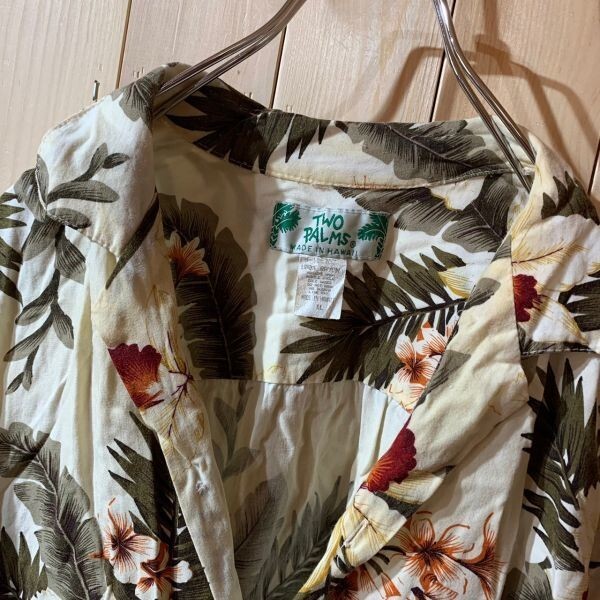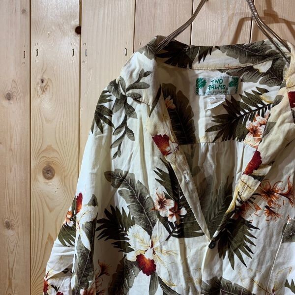 [KWT3233] TWO PALMS アロハシャツ メンズ オフホワイト XL ポス