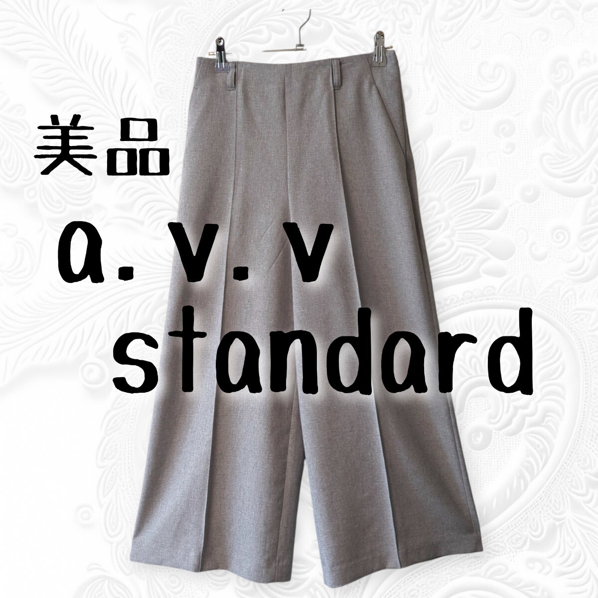 美品 a.v.v standard アー・ヴェ・ヴェ センタープレスワイドパンツ スラックス オフィスコカジュアルコーデ グレー ウエストゴム 春夏秋 イトキン