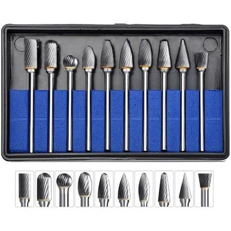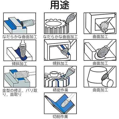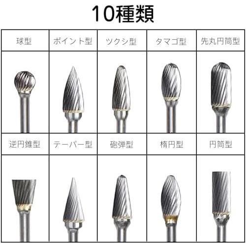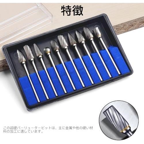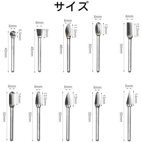 サムコス 超硬バー リューター ビット 10種類 ケース付10本セット タングステン製 超硬ドリルビット (3mm軸刃幅6mm, B)