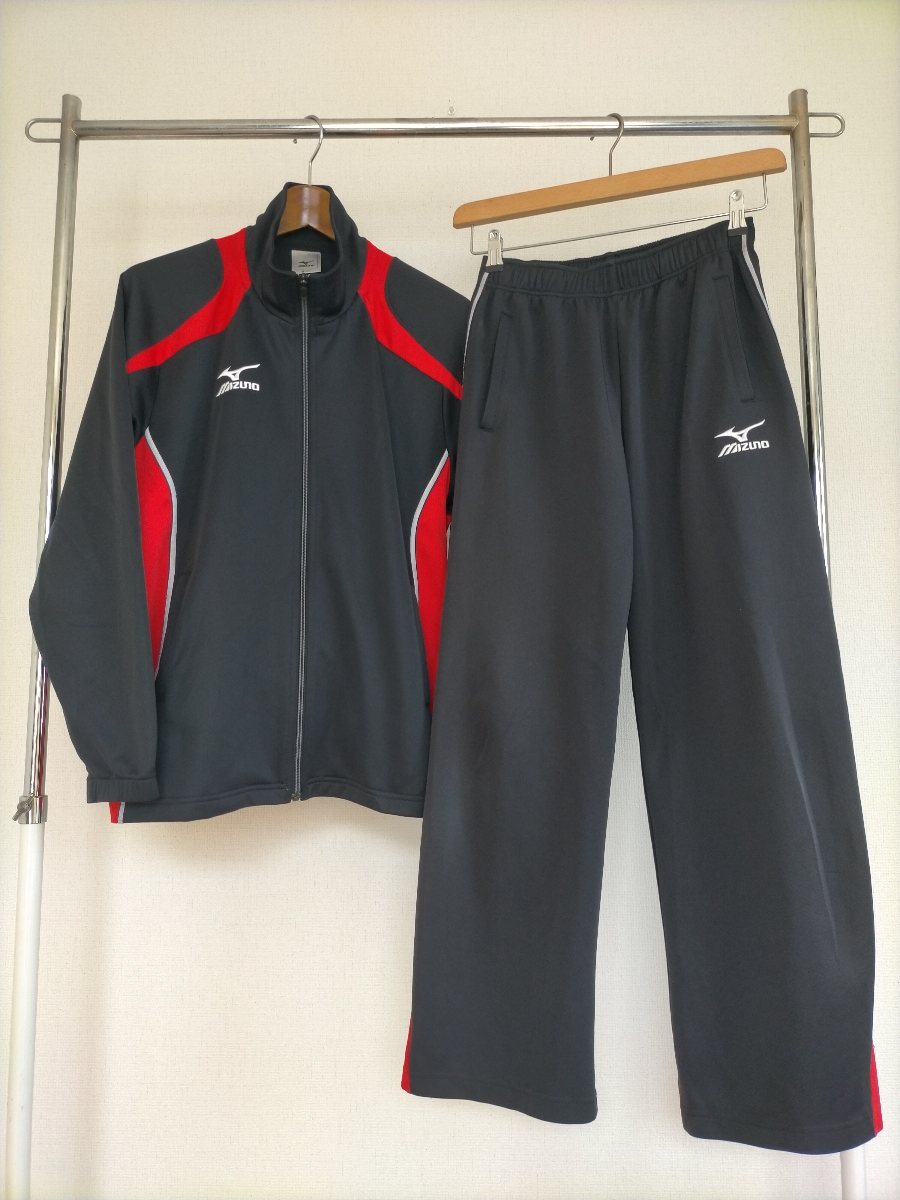 状態良好 MIZUNO ミズノ ジャージ上下 セットアップ size-M ブラック×レッド ★トレーニングウエア