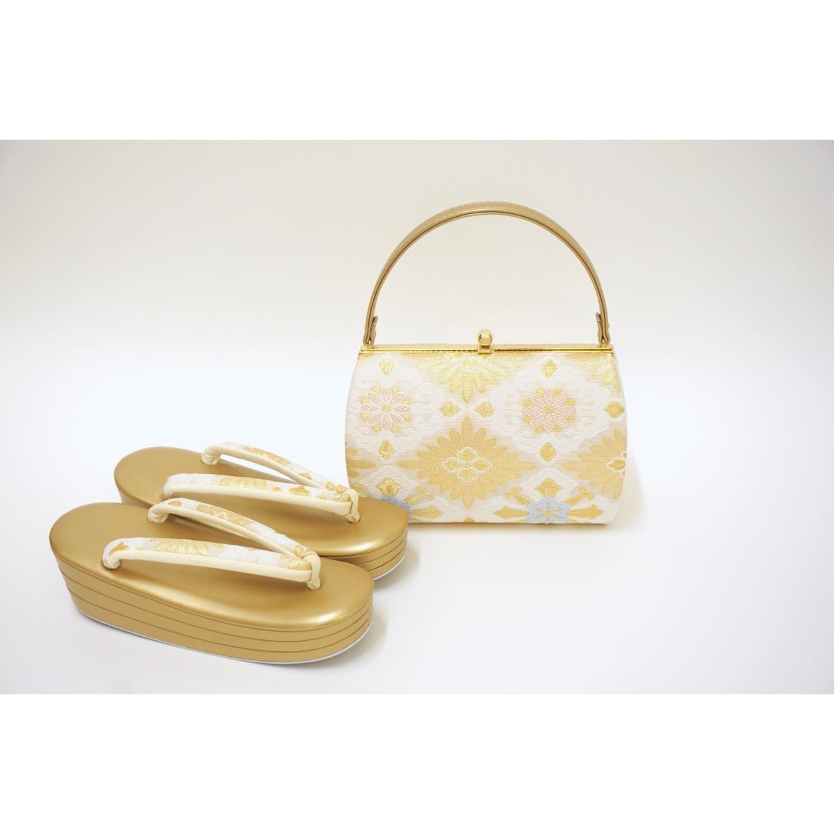 | 詳細説明 | 草履サイズ:24.5cm(かかとの高さ約6.5cm)バッグサイズ:横:約21.5cm 縦:約14cm マチ:約10cm※持ち手は含まず |