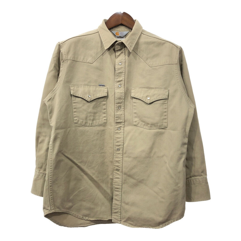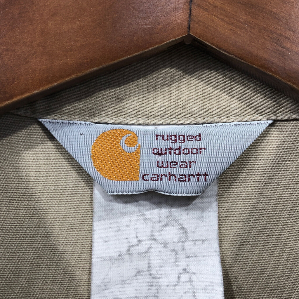 | 【商品管理番号】 Q7219 【ブランド】 Carhartt/カーハート 【サイズ】 M相当 【実寸サイズ】 肩幅:約50cm 着丈:約82cm 身幅:約66cm 袖丈:約60cm 【主な素材】 表地 : コットン 【色】 ベージュ 【仕様】 ウエスタン 【状態】 汚れ:袖先、腹部、背中 特記事項:使用感あり | |||