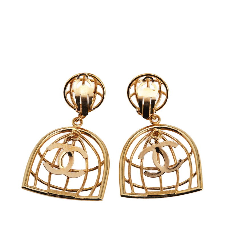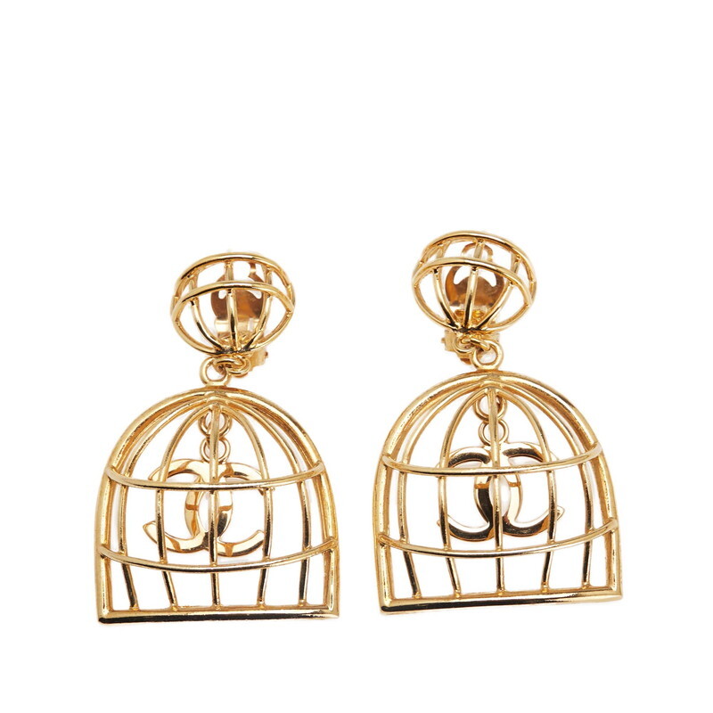シャネル ヴィンテージ ココマーク 鳥かごモチーフ イヤリング ゴールド メッキ レディース CHANEL 【中古】