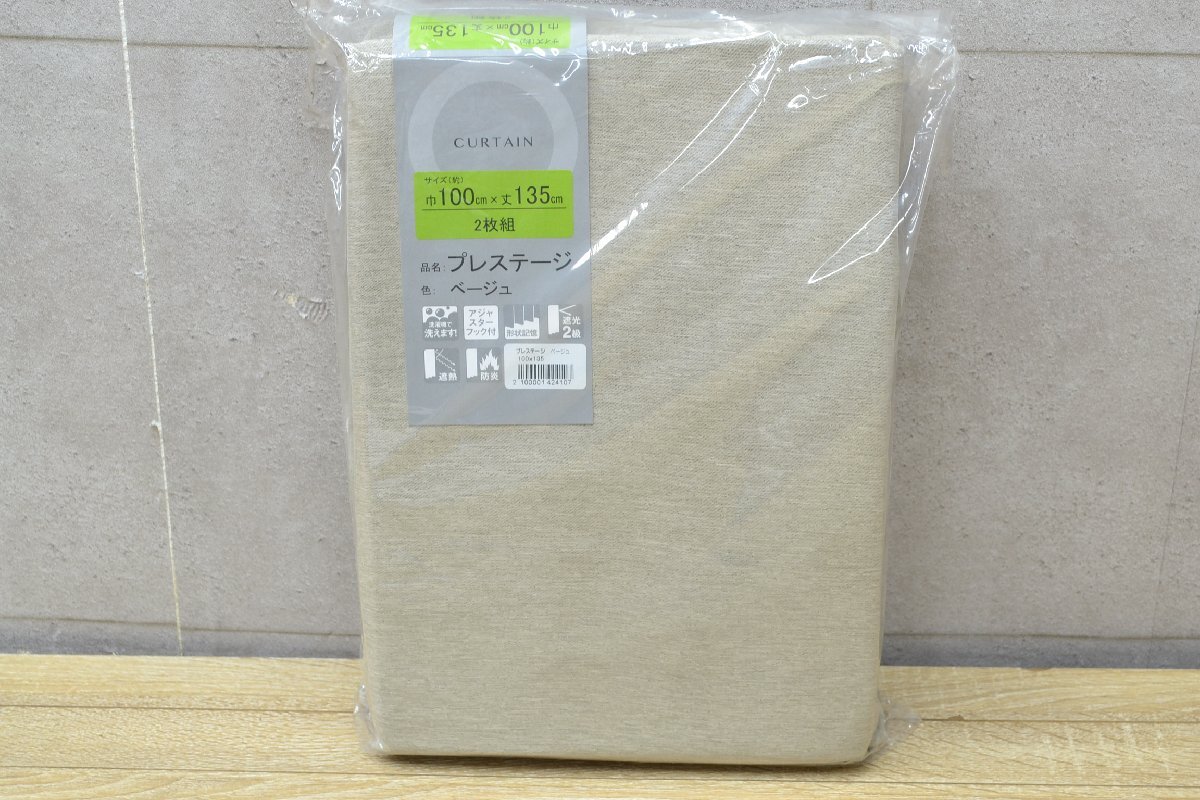 ■W1870■未使用・長期保管品■カーテン 品名:プレステージ 色:ベージュ■幅100㎝×丈135㎝ 2枚組■遮光2級・アジャスターフック付・遮熱・防炎・形状記憶