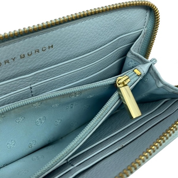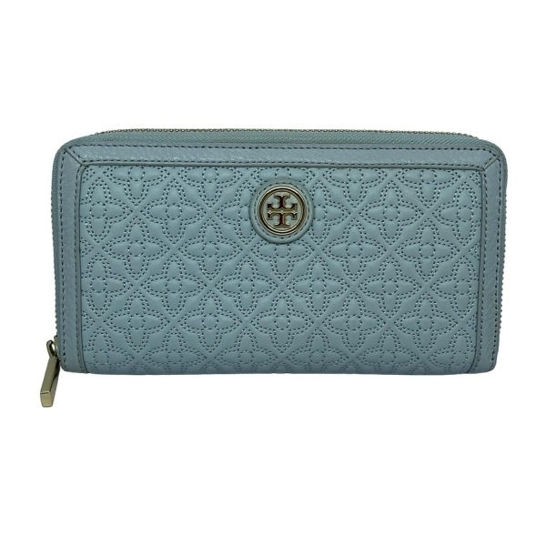 トリーバーチ TORY BURCH 長財布 - レザー ライトブルー フラワー(花)/キルティング/ラウンドファスナー 財布