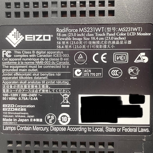 | 6972//EIZO RadiForce MS231WT 23インチ ワイド 液晶ディスプレイ マルチタッチ対応/フルHD/アンチグレア/HDMI/スタンドなし モニター | |||