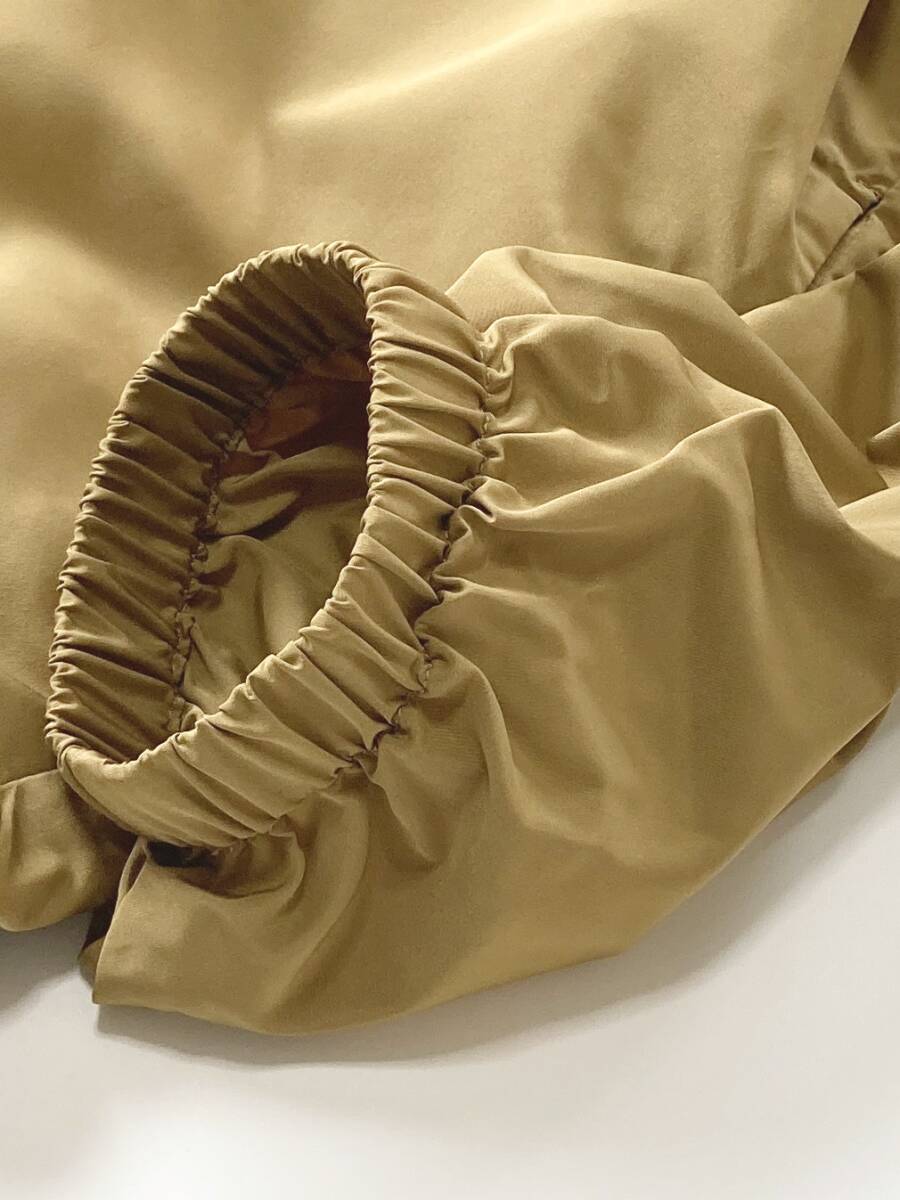 ネックラインにギャザーを施したディテールが程よい立体感を演出◎