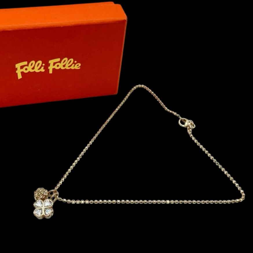 美品 Folli Follie フォリフォリ Sv925 ラインストーン クローバーモチーフ ネックレス ペンダント ギャラ・箱付き |