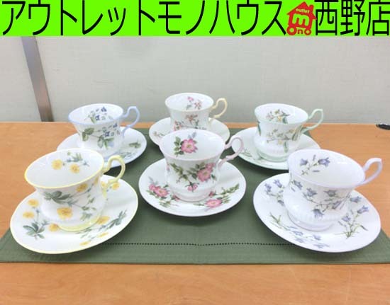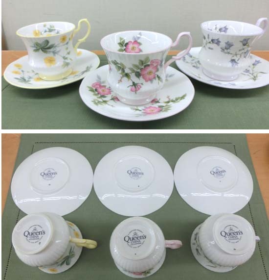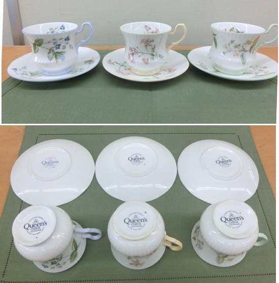 英国製 Queen's China カップ&ソーサー 6客 花モチーフ 6種類 ENGLISH FINE BONE CHINA 洋食器 C&S 札幌 西野店