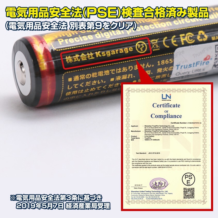 ■Trustfire社製充電池でPSE届出受理された事業者はKsガレージのみ。(平成31年5月現在)