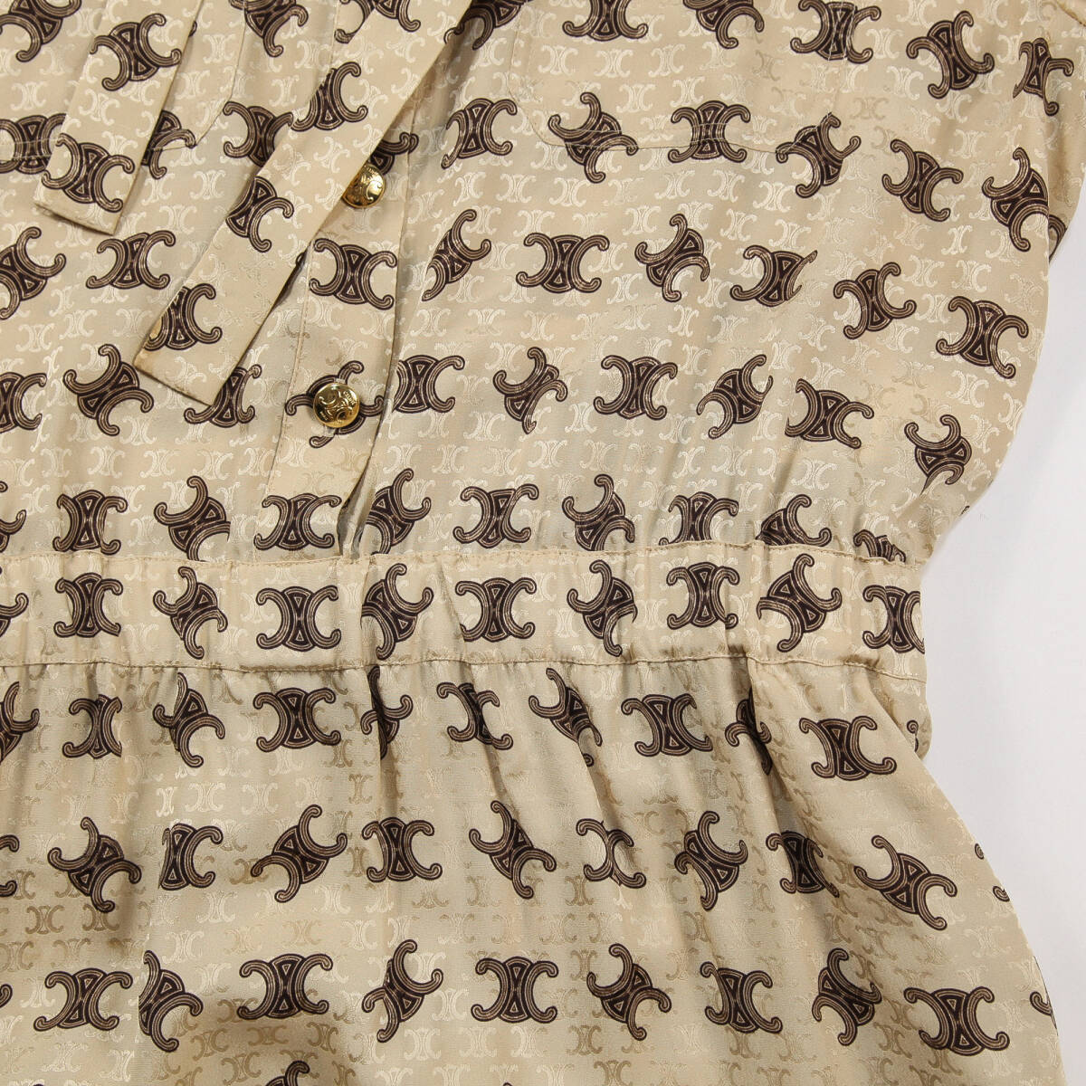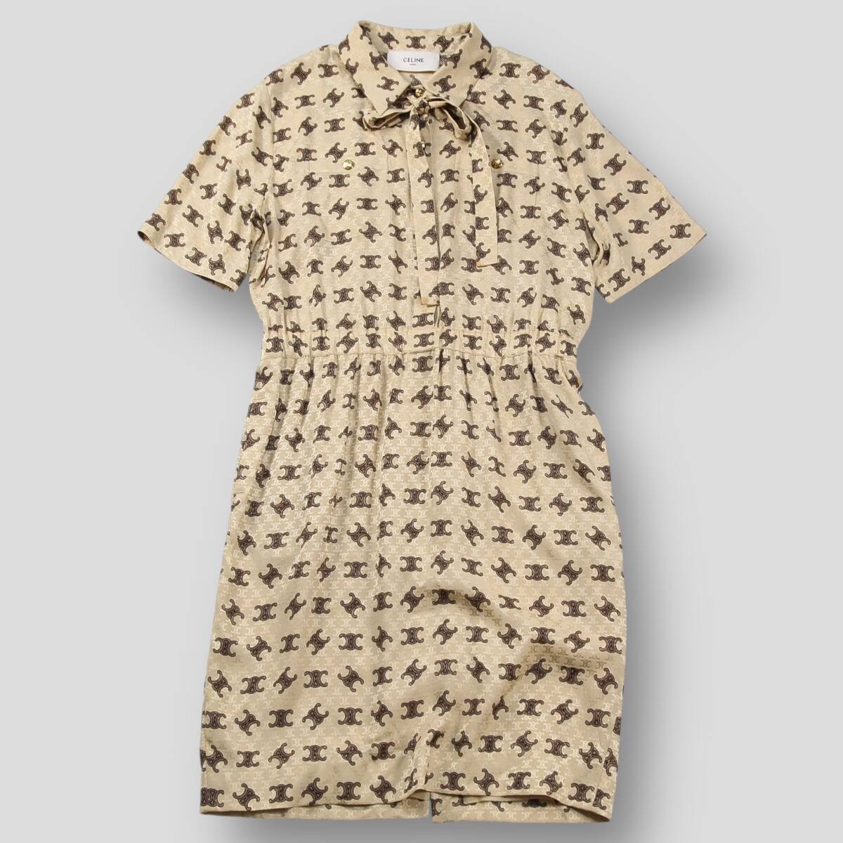 CELINE by Hedi Slimane 23SS ラヴァリエール ドレス シャイニーマットシルク 2R61G812T.03ON 40 トリオンフ ボウ タイ リボン ワンピース