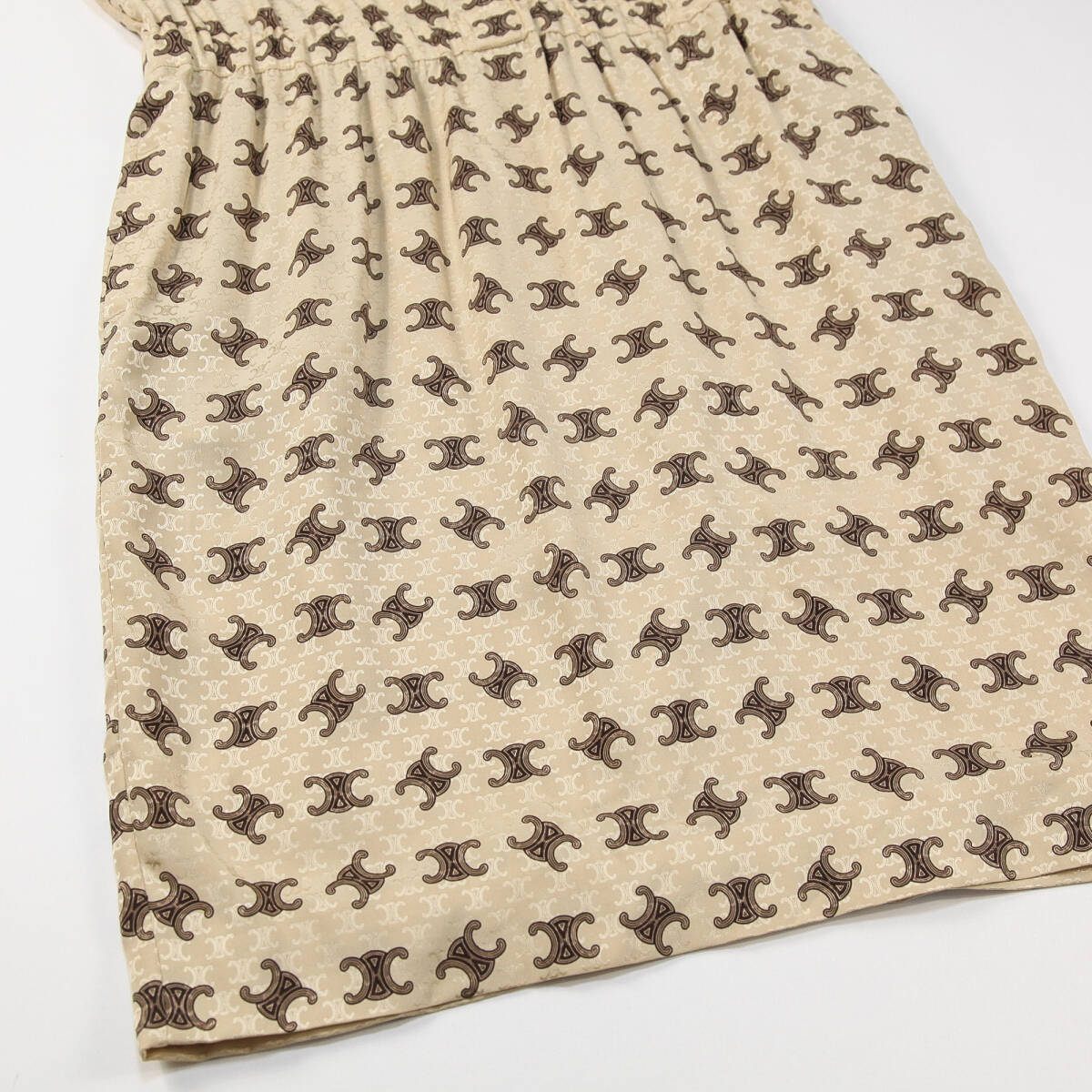 ロゴが織り込まれたシルクジャカードにさらにロゴをプリントした特徴的なデザインで、絶妙なミディ丈にウエストゴムをあしらったすっきりとしたシルエットに仕上げています。